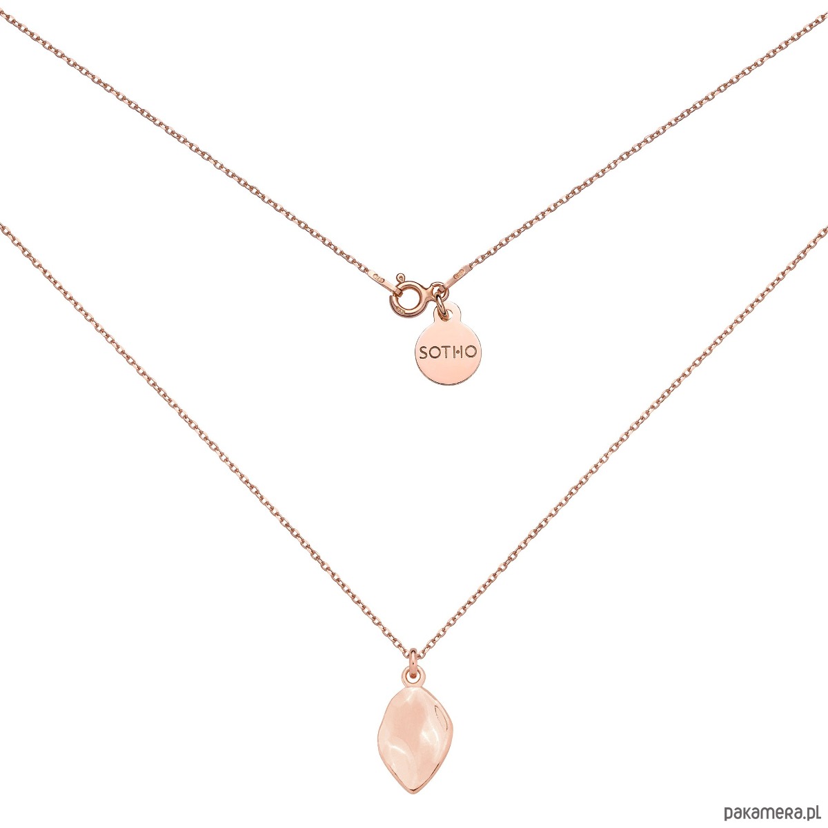 Złoty naszyjnik z łezką oraz z logo marki. Całość wykonana ze srebra 925 powlekanego 18 karatowym różowym złotem.