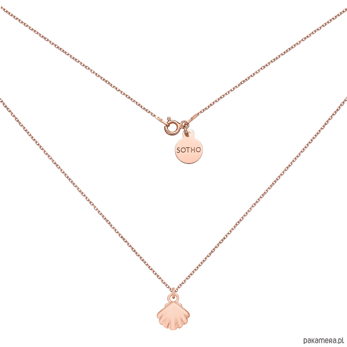 Złoty naszyjnik z muszelką. Całość wykonana ze srebra 925 powlekanego 18 karatowym różowym złotem.