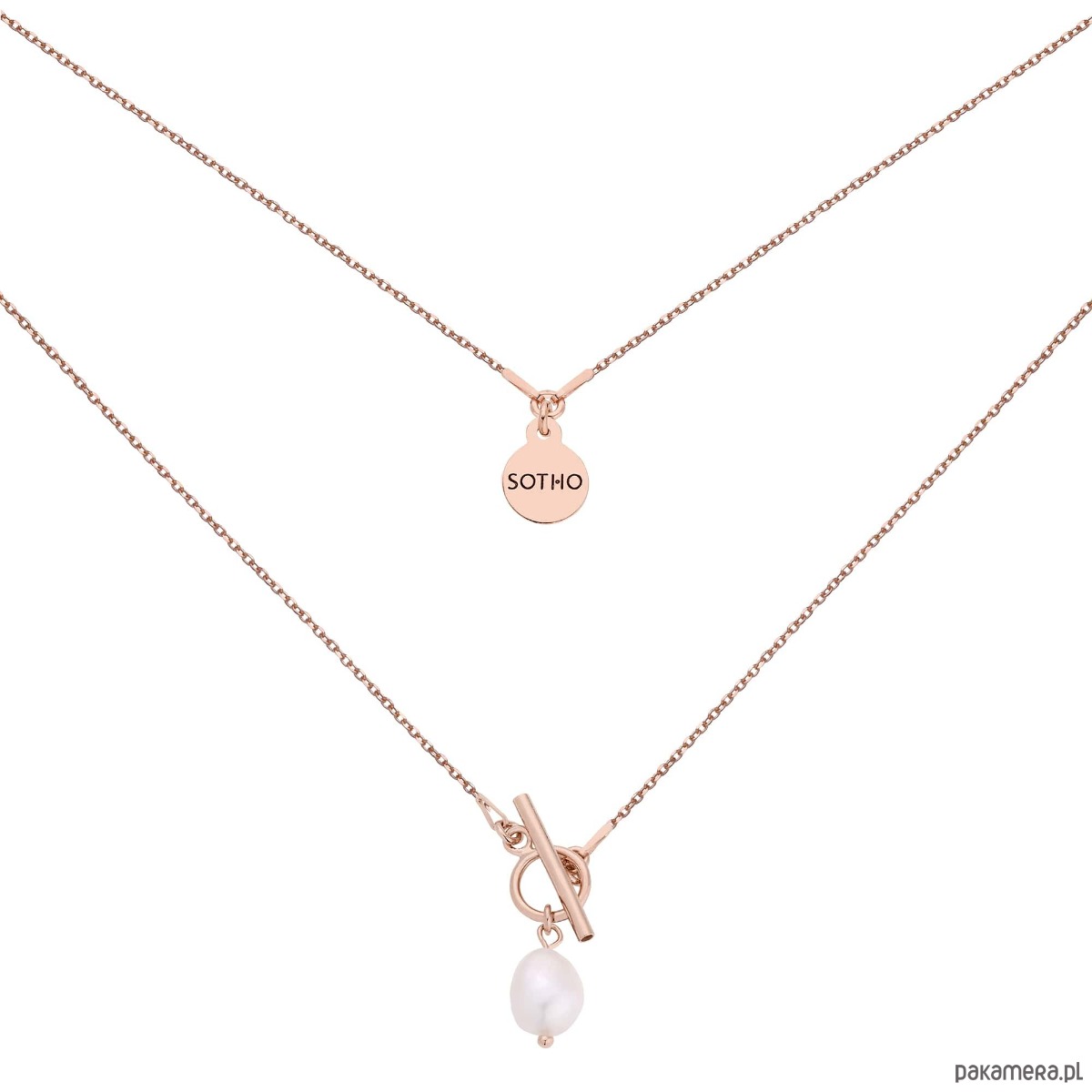 Złoty naszyjnik z ozdobnym zapięciem i naturalną nieregularną perłą. Całość wykonana ze srebra 925 powlekanego 18 karatowym różowym złotem. Perła jest nieregularna, unikatowa i może różnić się od tej na zdjęciu.