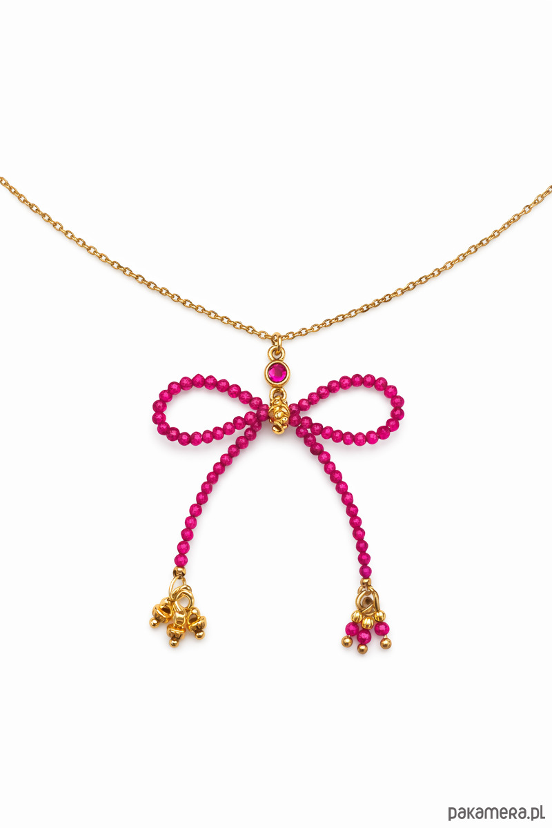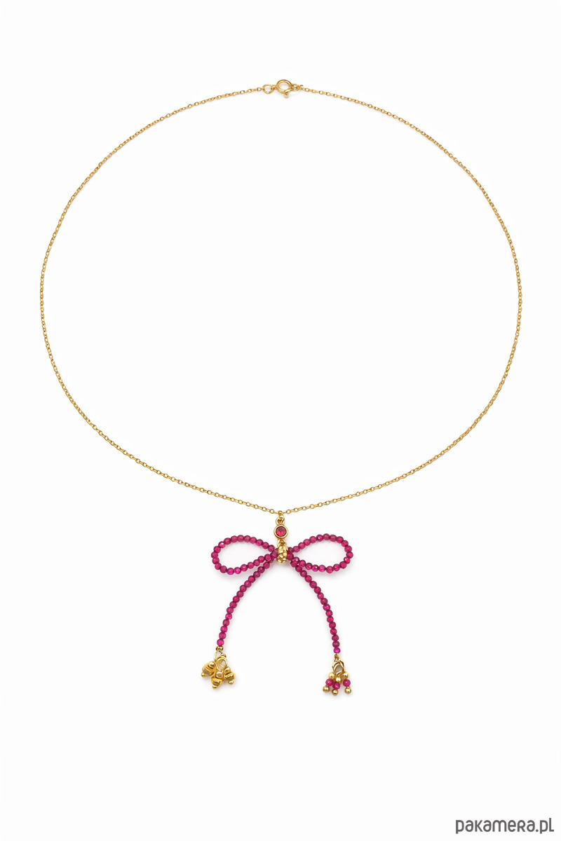 Naszyjnik z rubinową kokardą złocone elementy