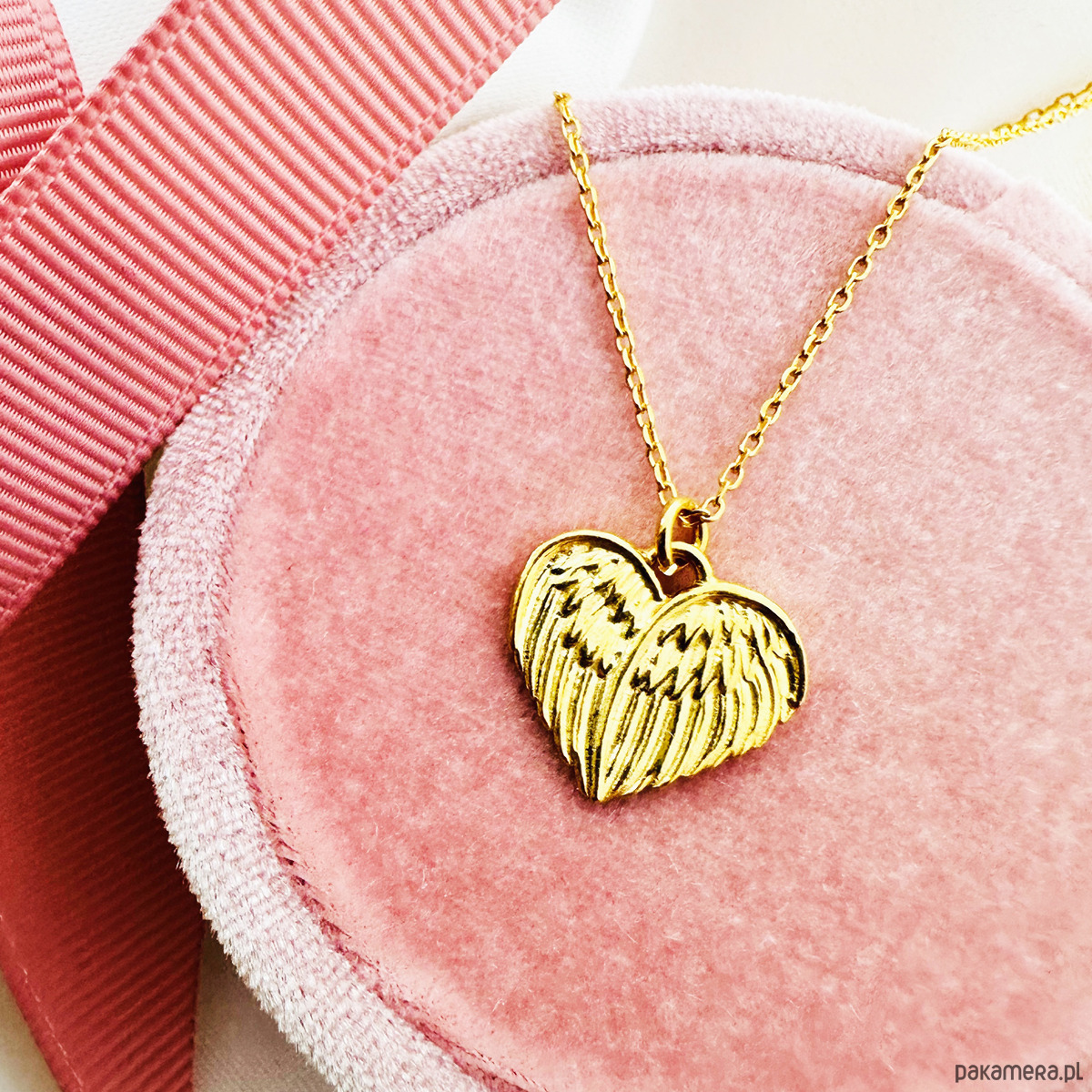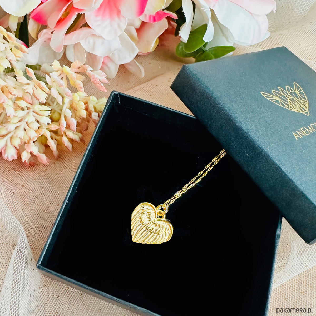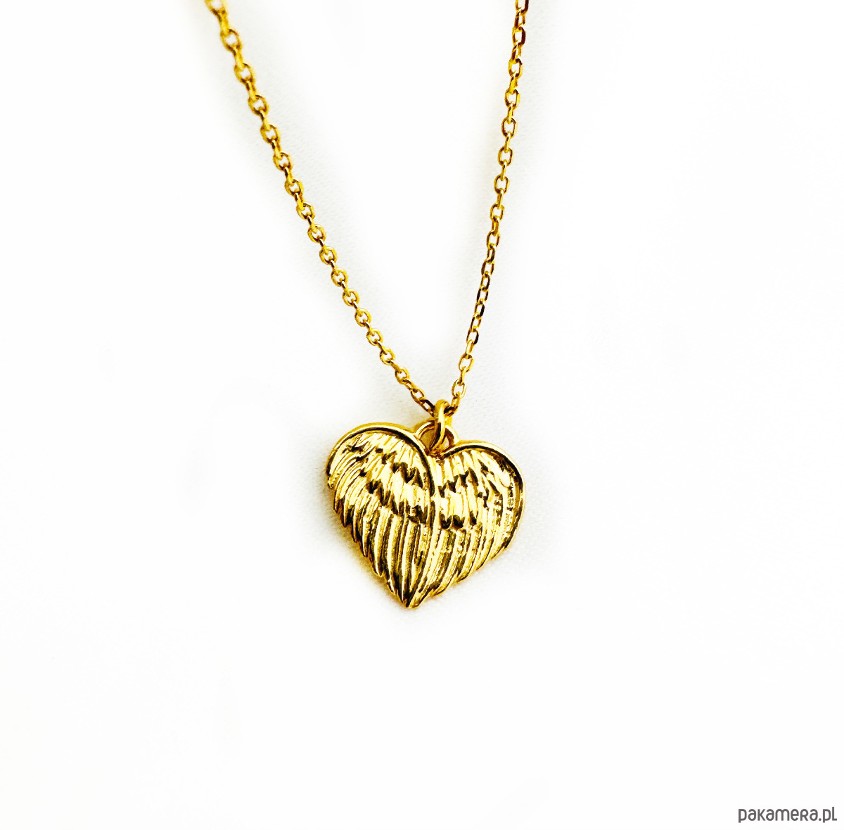 Oryginalny naszyjnik z wyjątkową zawieszką w kształcie serca, utworzoną z delikatnie ułożonych skrzydeł. Wykonany z wysokiej jakości srebra próby 925, pokrytego warstwą 24-karatowego złota. Subtelna forma i symboliczny motyw sprawiają, że naszyjnik doskonale podkreśla kobiecość i doda blasku każdej stylizacji — zarówno na co dzień, jak i na wyjątkowe okazje.