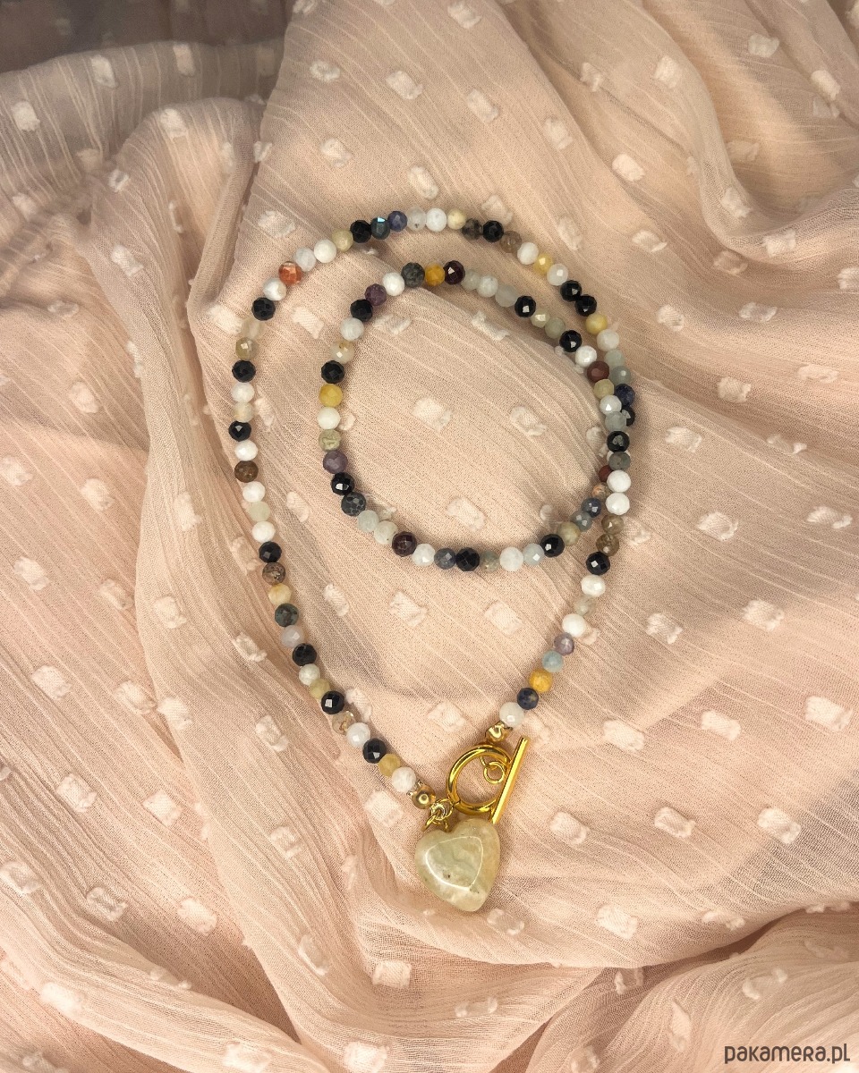 Naszyjnik z mixem kamieni, zapięciem typu toggle i zawieszką z sercem z amazonitu.
