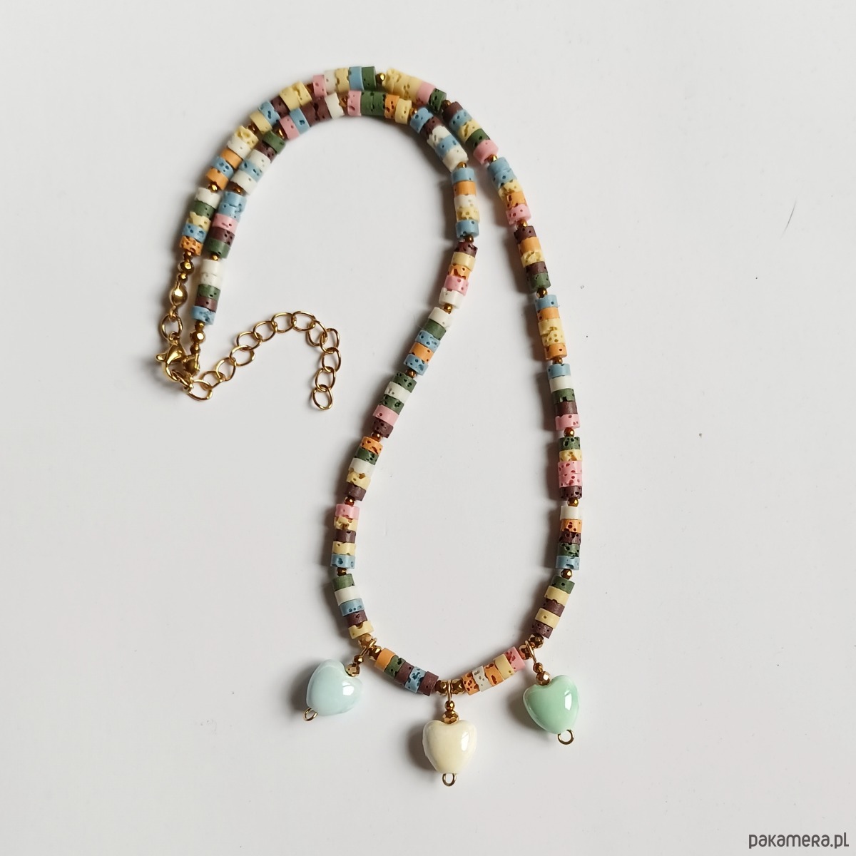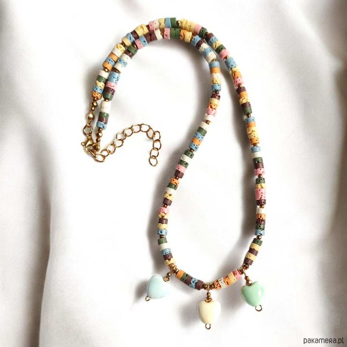 Naszyjnik z serduszkami ceramicznymi : kolorowa lawa