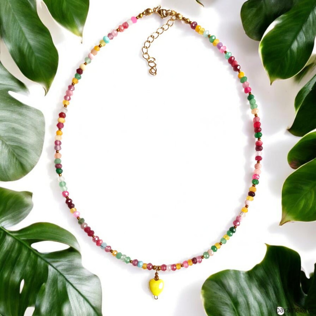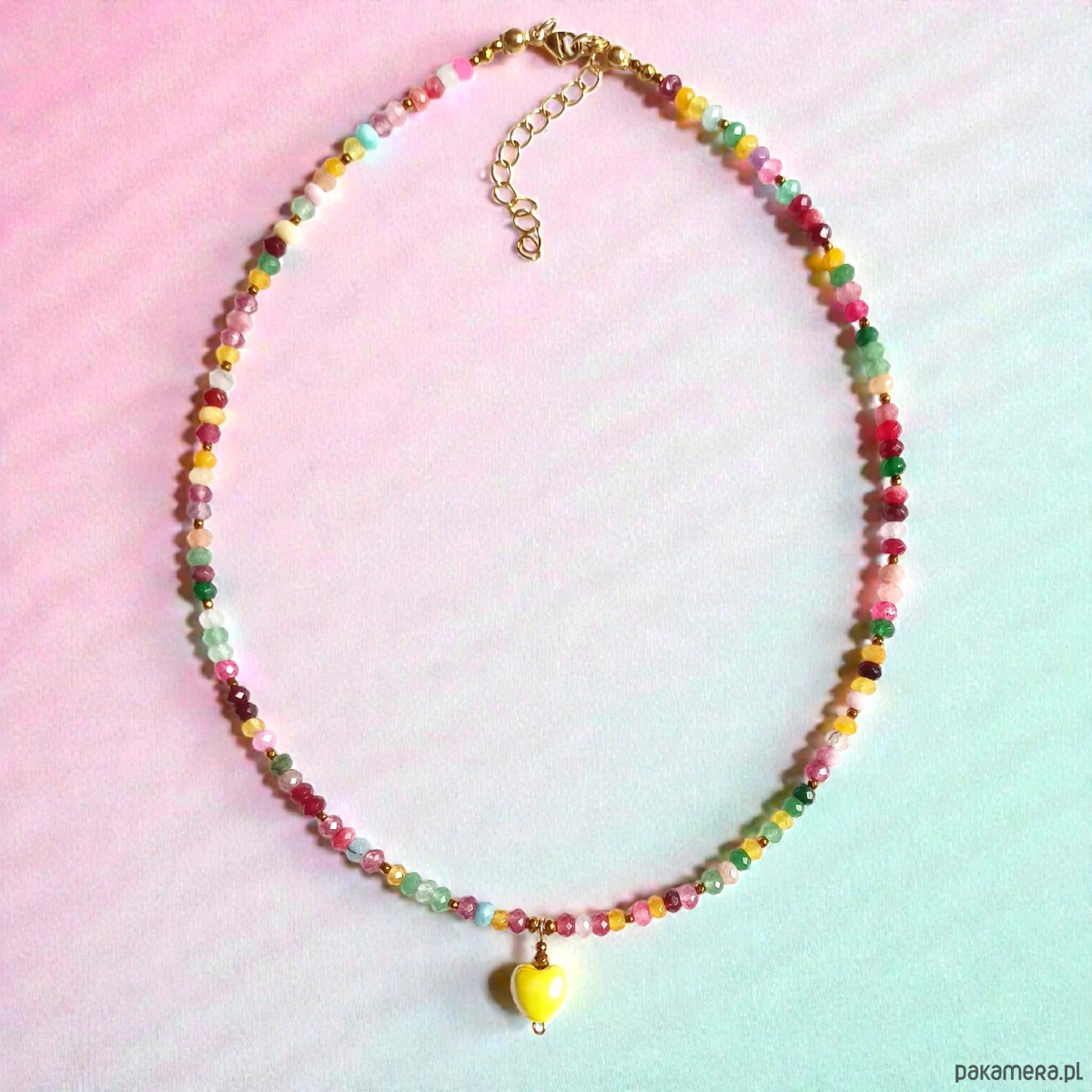 Naszyjnik z serduszkiem : jadeit, ceramiczne serduszko : multicolor