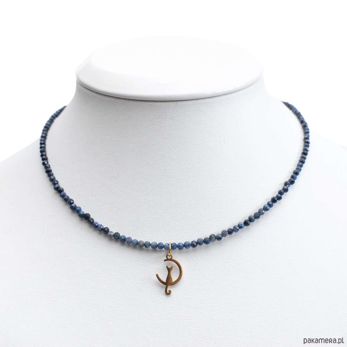 Głęboki granatowy Sodalit wspiera logiczne myślenie i klarowność umysłu, podczas gdy Labradoryt jest znany z potęgowania intuicji i ochrony przed iluzjami. To dodatek dla kobiety, która ufa swojej wewnętrznej mądrości. Urocza, złocona zawieszka w kształcie kotka na księżycu to ukłon w stronę kobiecej wrażliwości i pasji do zwierząt. Ten unikatowy detal sprawia, że naszyjnik budzi pozytywne emocje i jest idealny do wyrażania swojego indywidualnego stylu. Drobne, fasetowane kamienie pięknie łapią światło. Zawieszka ze stali nierdzewnej złoconej gwarantuje wytrzymałość i bezpieczeństwo noszenia. To piękna biżuteria, która jest równie solidna, co magiczna.