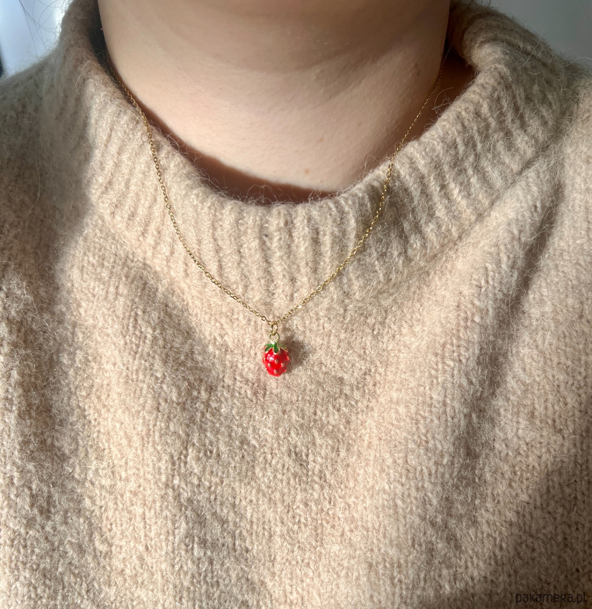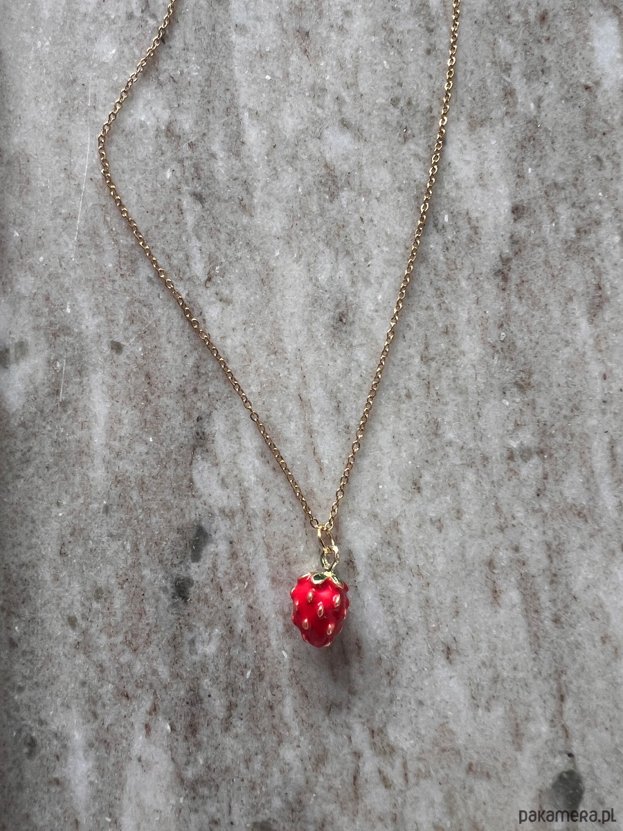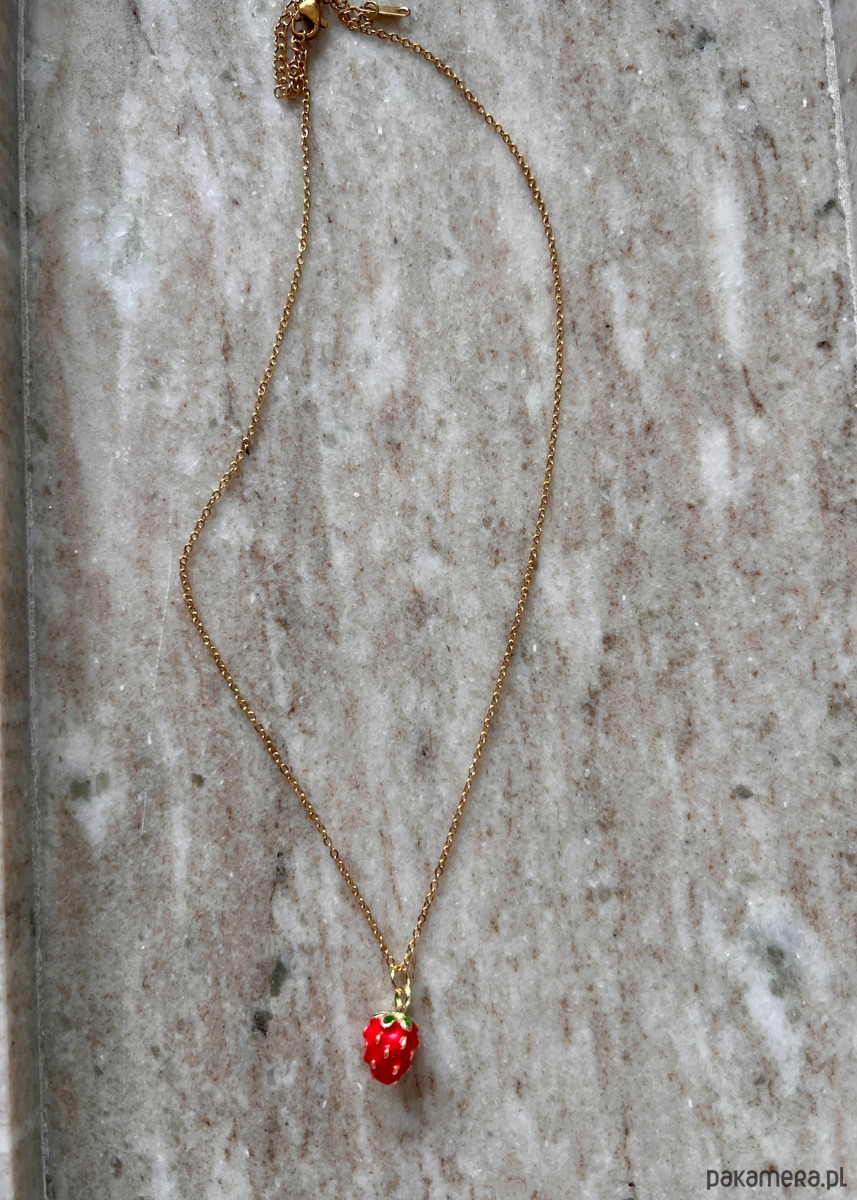 Ręcznie robiony naszyjnik z hipoalergicznej pozłacanej stali nierdzewnej z truskawką.
