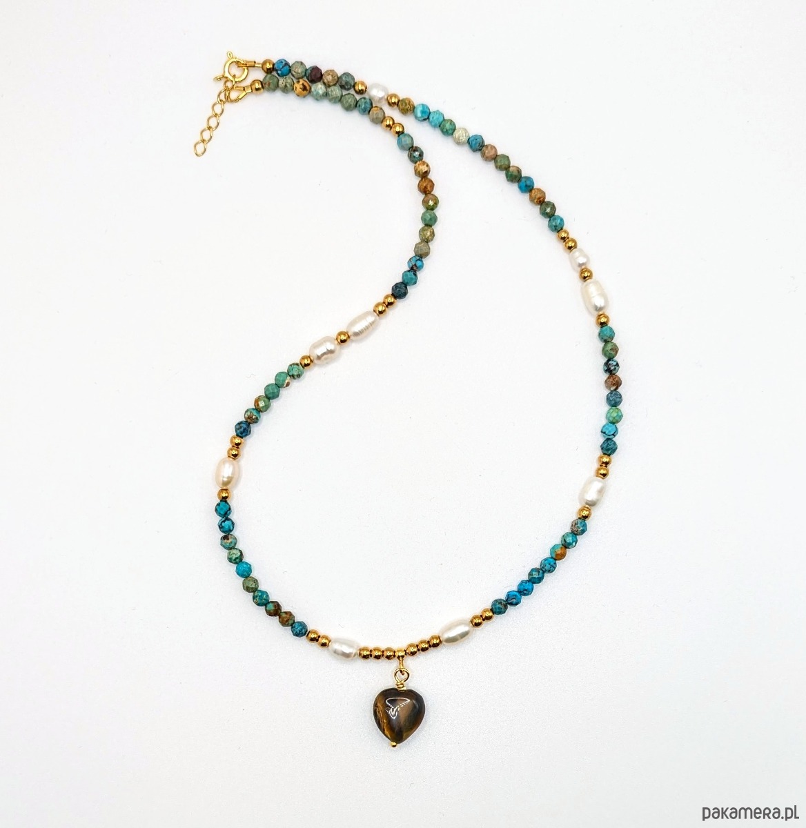 Naszyjnik z turkusów z serduszkiem z tygrysiego oka