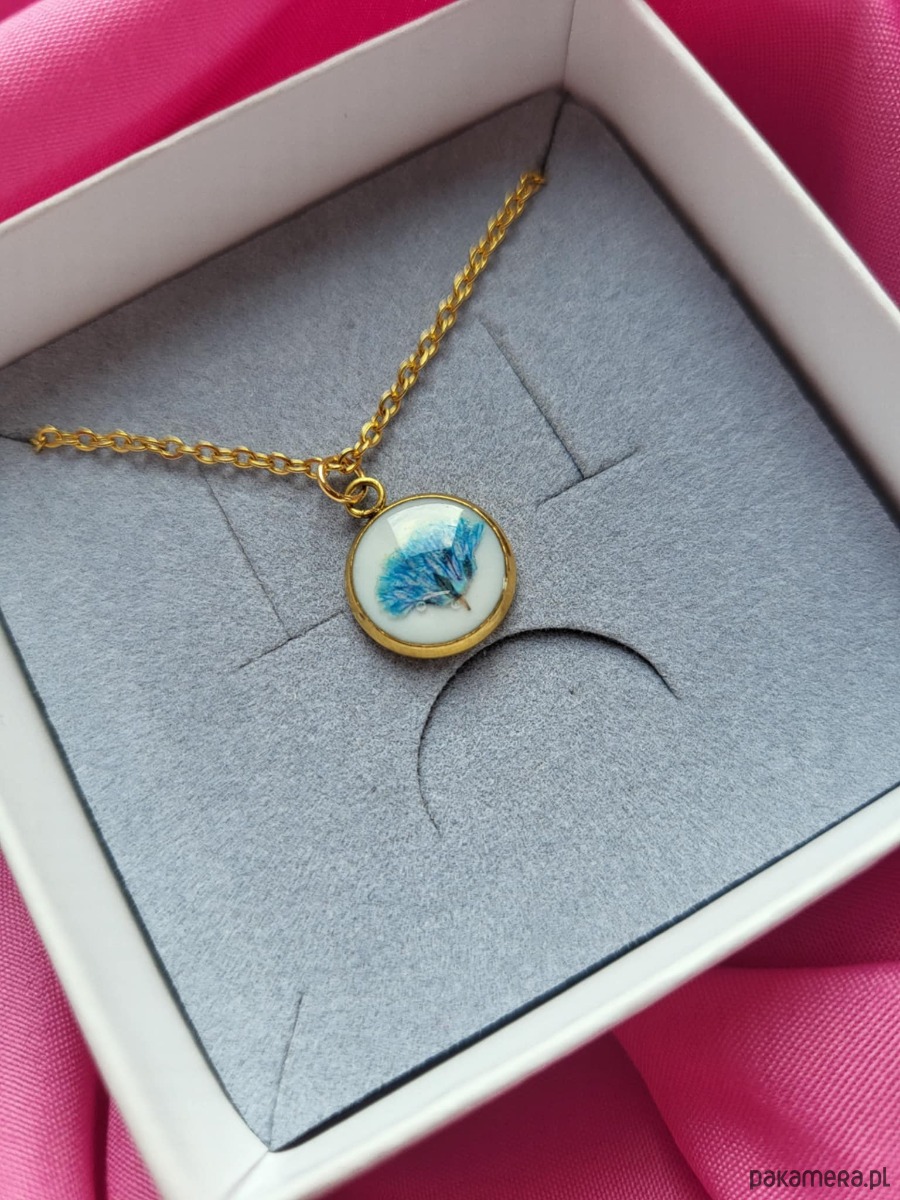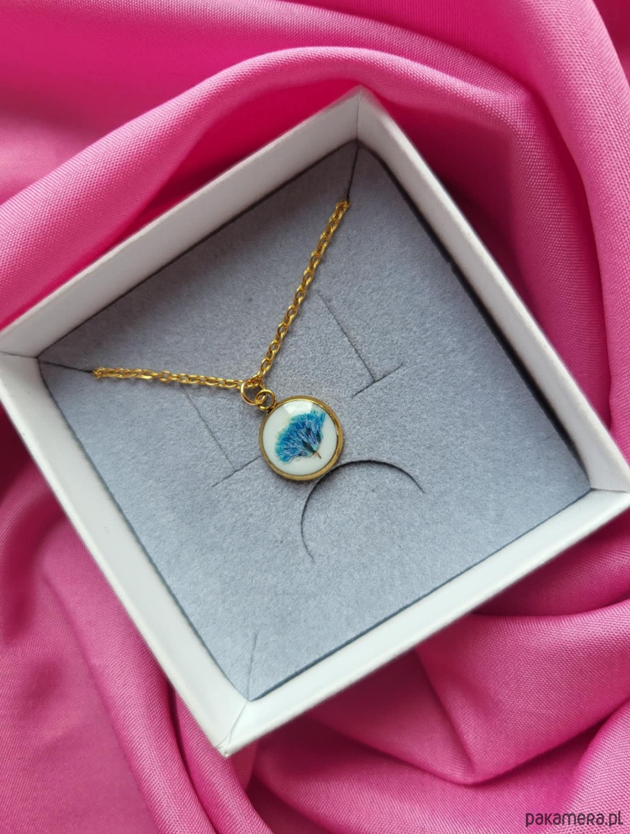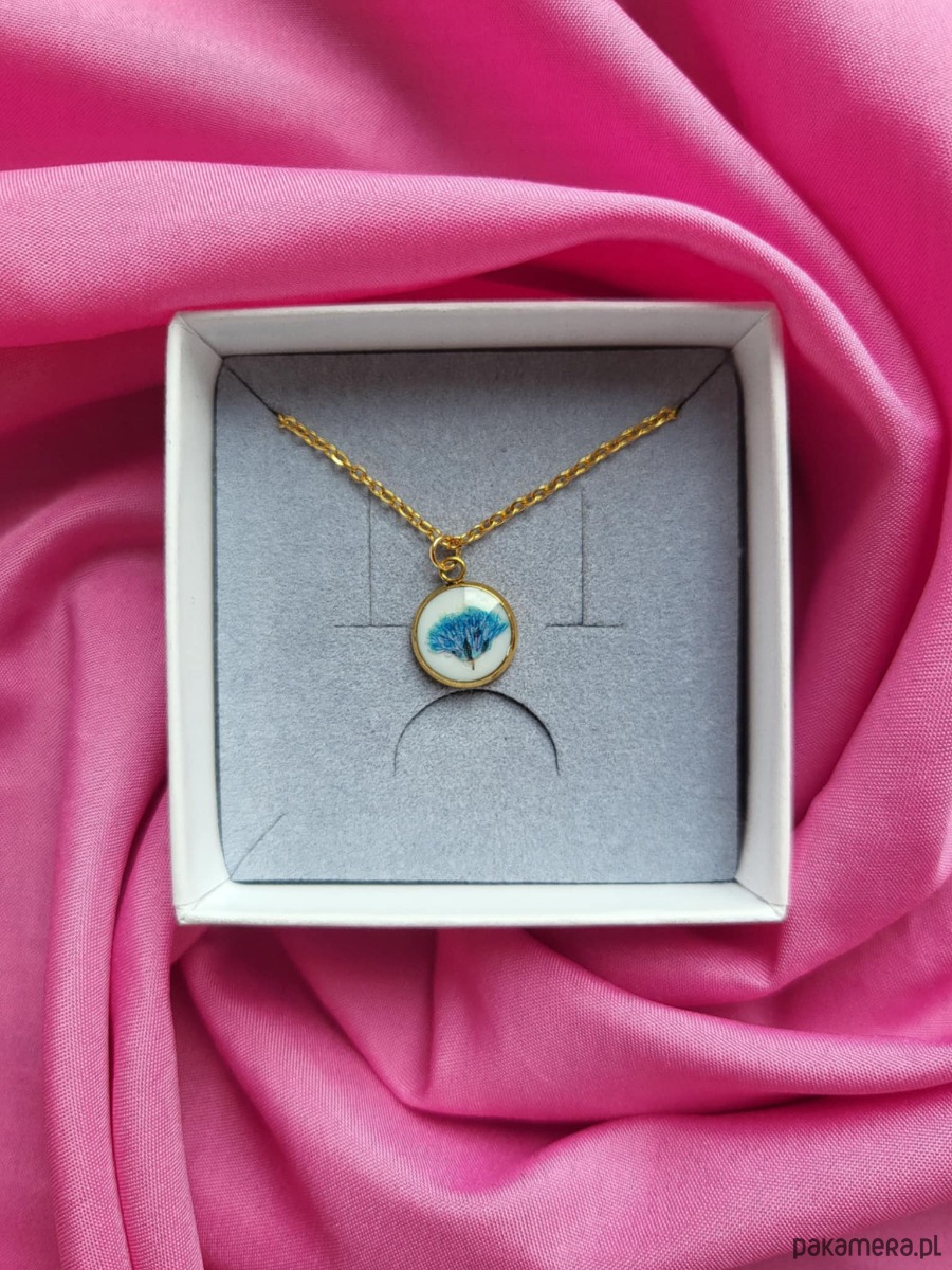 Naszyjnik z kwiatem suszonej gipsówki to unikatowa, ręcznie wykonana biżuteria z serii Harmonia.