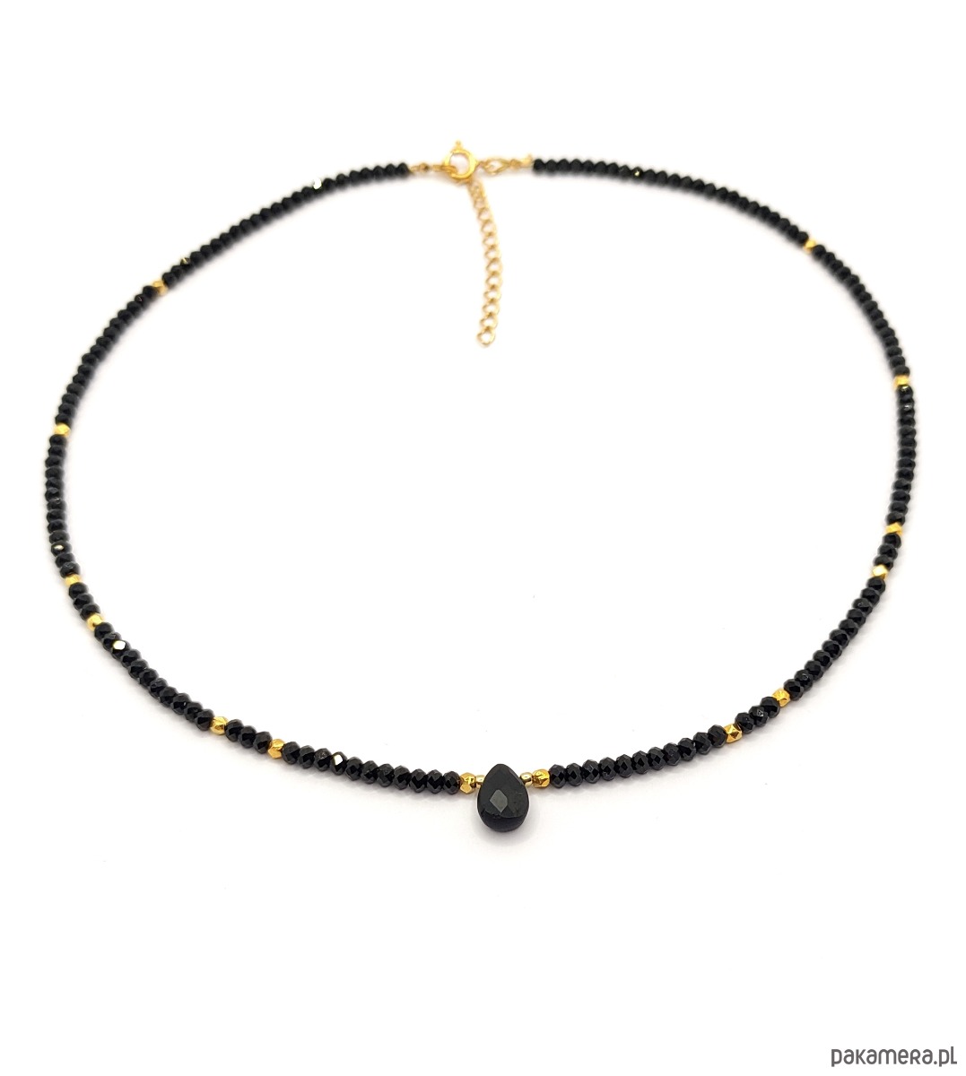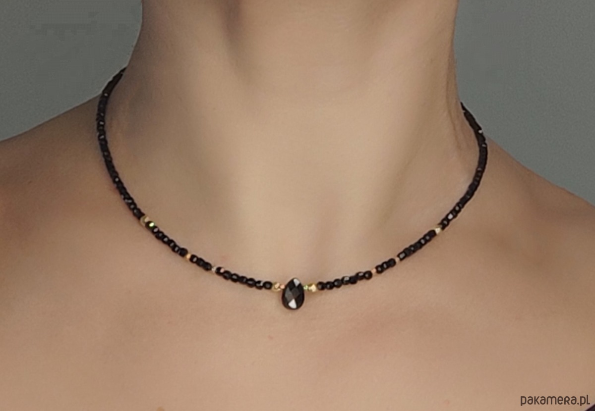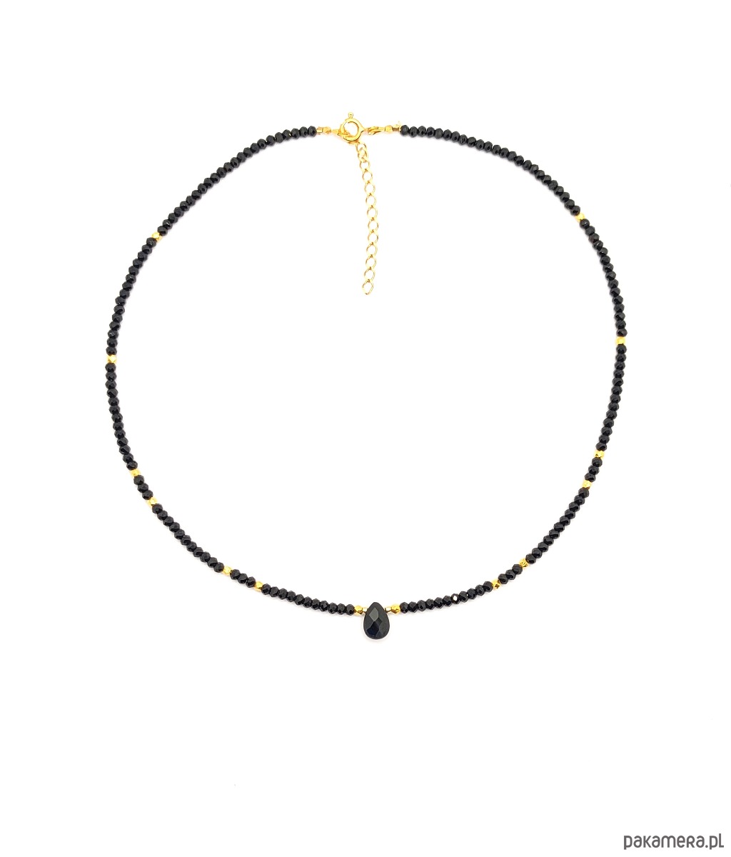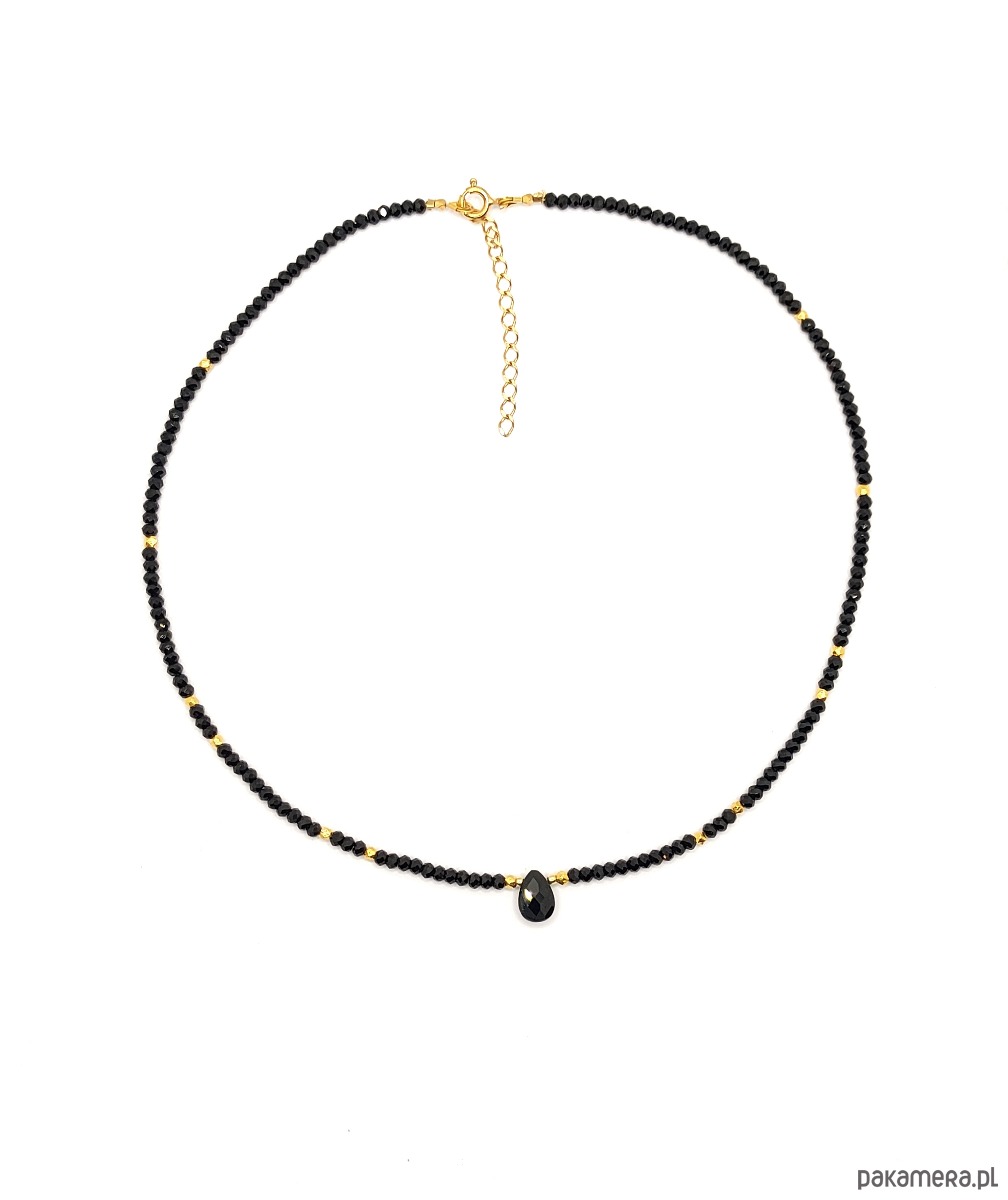 Delikatny, a jednocześnie wyrazisty naszyjnik wykonany z turmalinów i brioletki pięknie ciętego spinelu. Gra złota i czerni daje pożądany efekt glamour :) Biżuteria minimalistyczna i ekskluzywna, idealna na prezent, gdyż przypadnie do gustu każdej kobiecie.