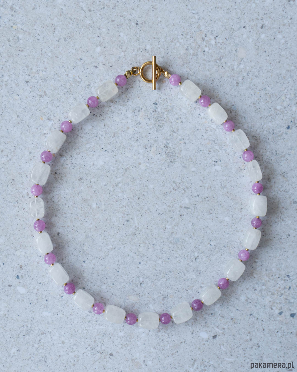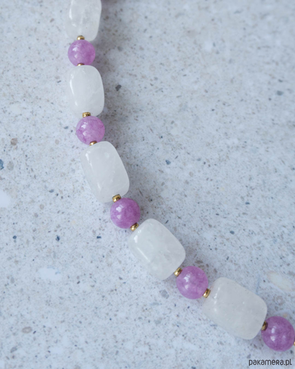 Naszyjnik z kryształu górskiego i jadeitu. Naszyjnik wykonany z kamienia naturalnego, zapięcia ze stali chirurgicznej w kolorze złotym.