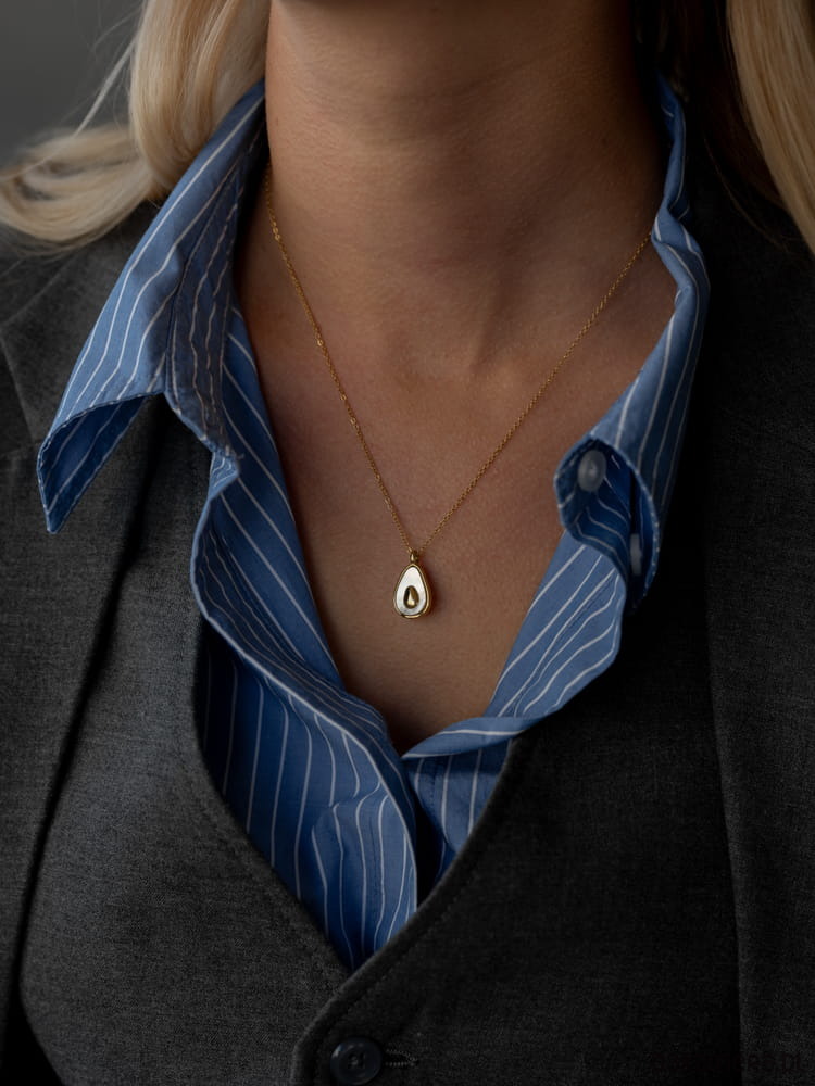 Ten naszyjnik z motywem awokado to prawdziwa perełka w naszej kolekcji.