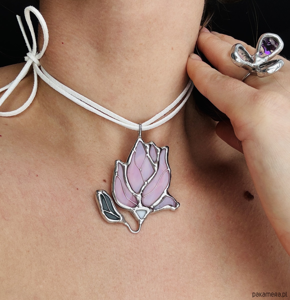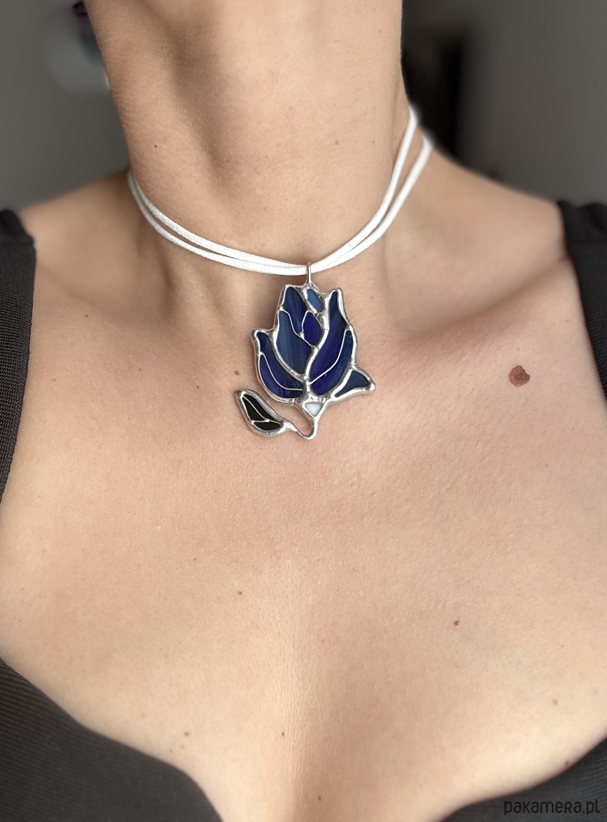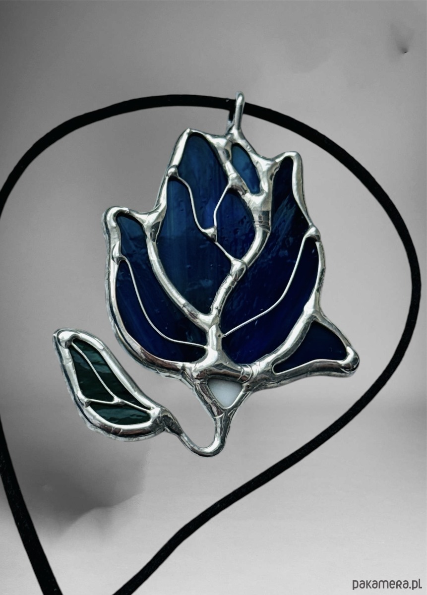Naszyjnik z Wisiorkiem delikatny Kwiat Magnolia Witraż Tiffany