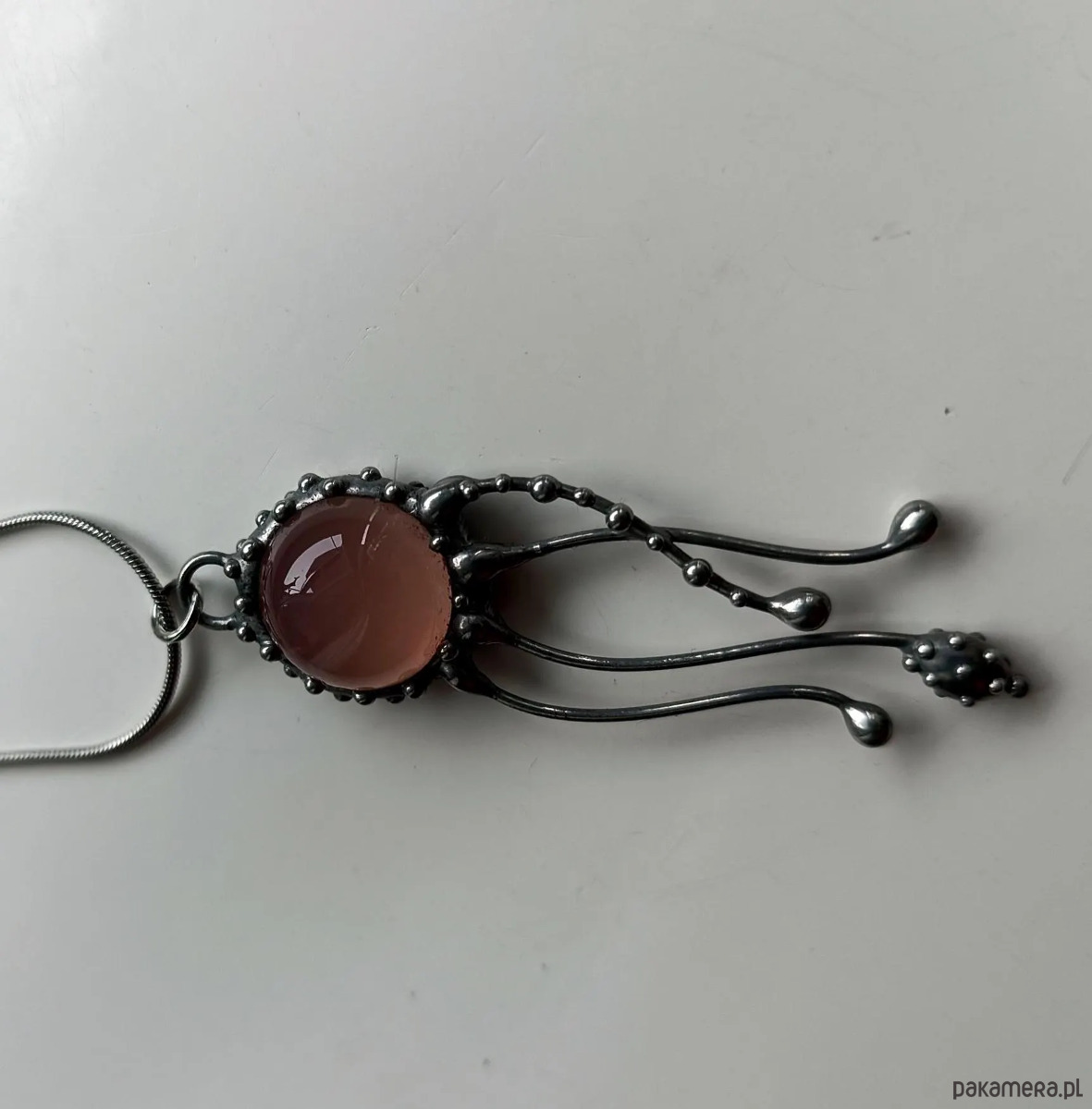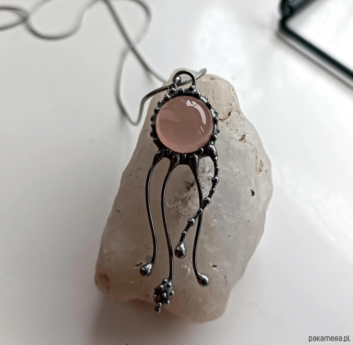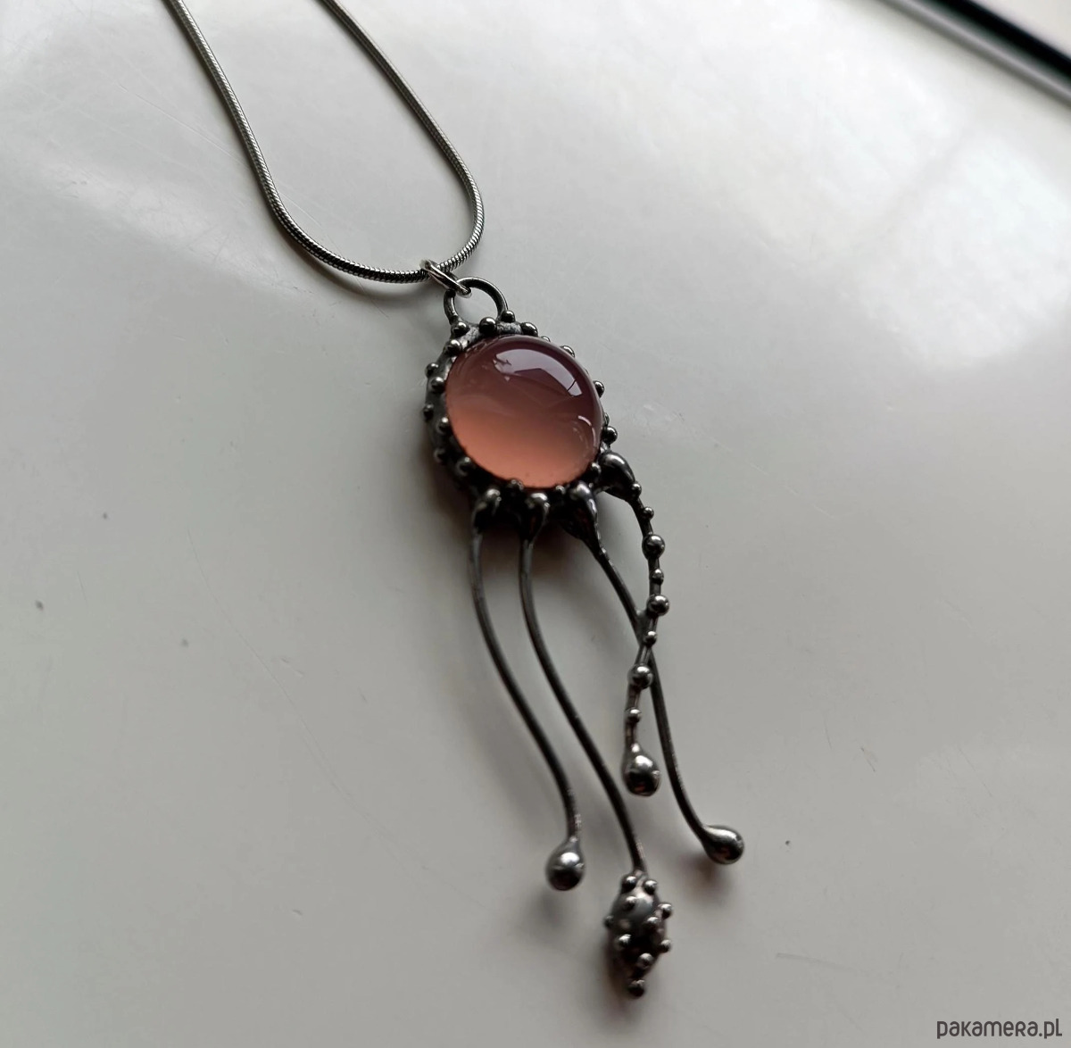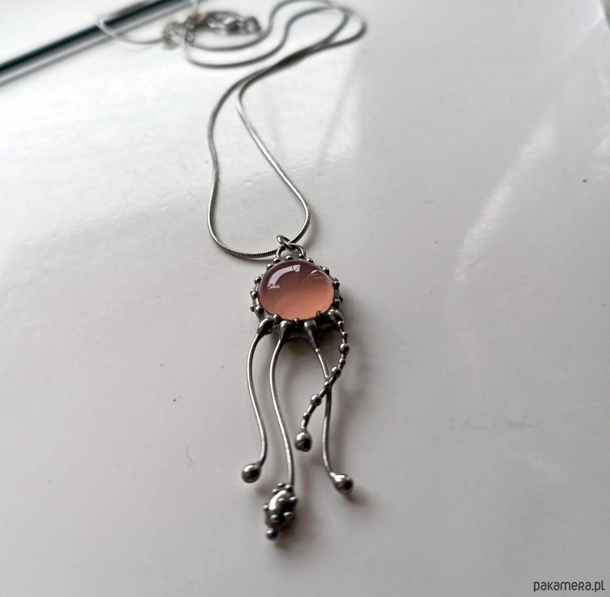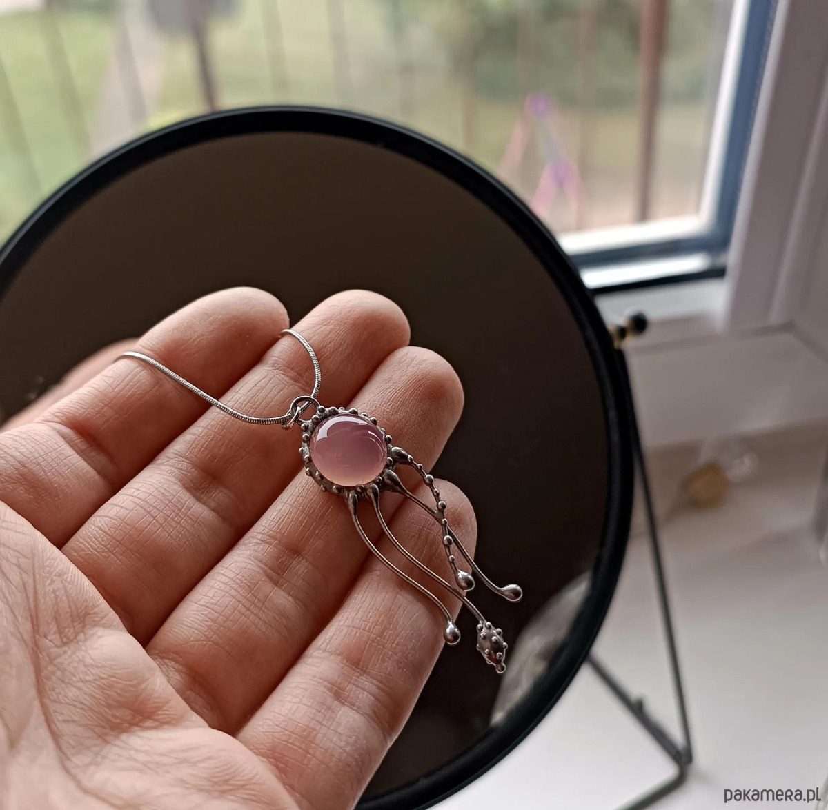 Naszyjnik z witrażem przedstawiającym meduzę z kamieniem z agatu różowego