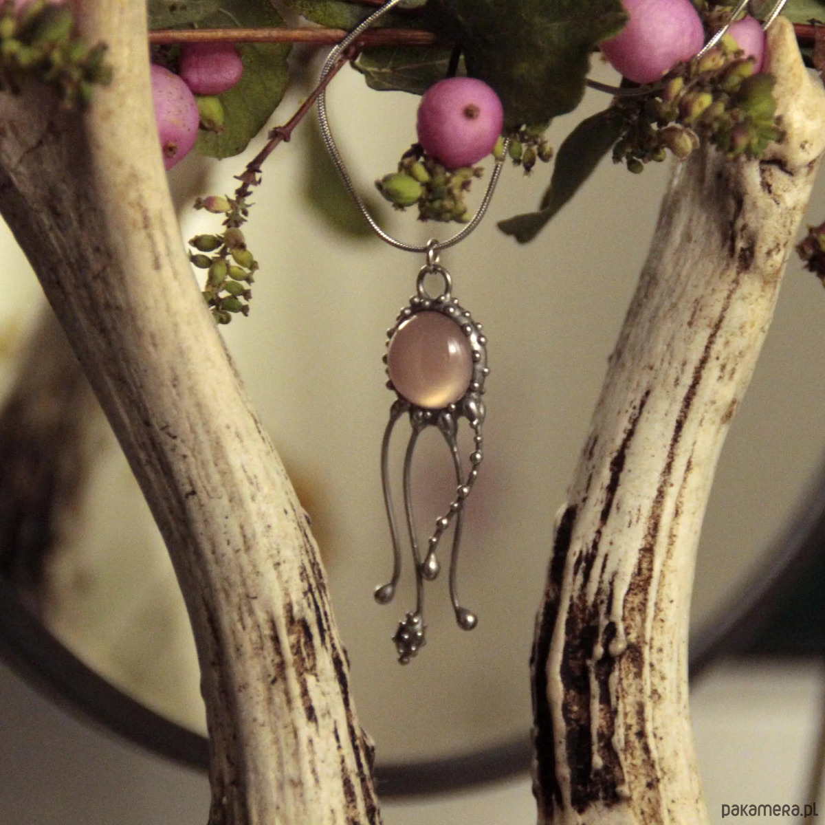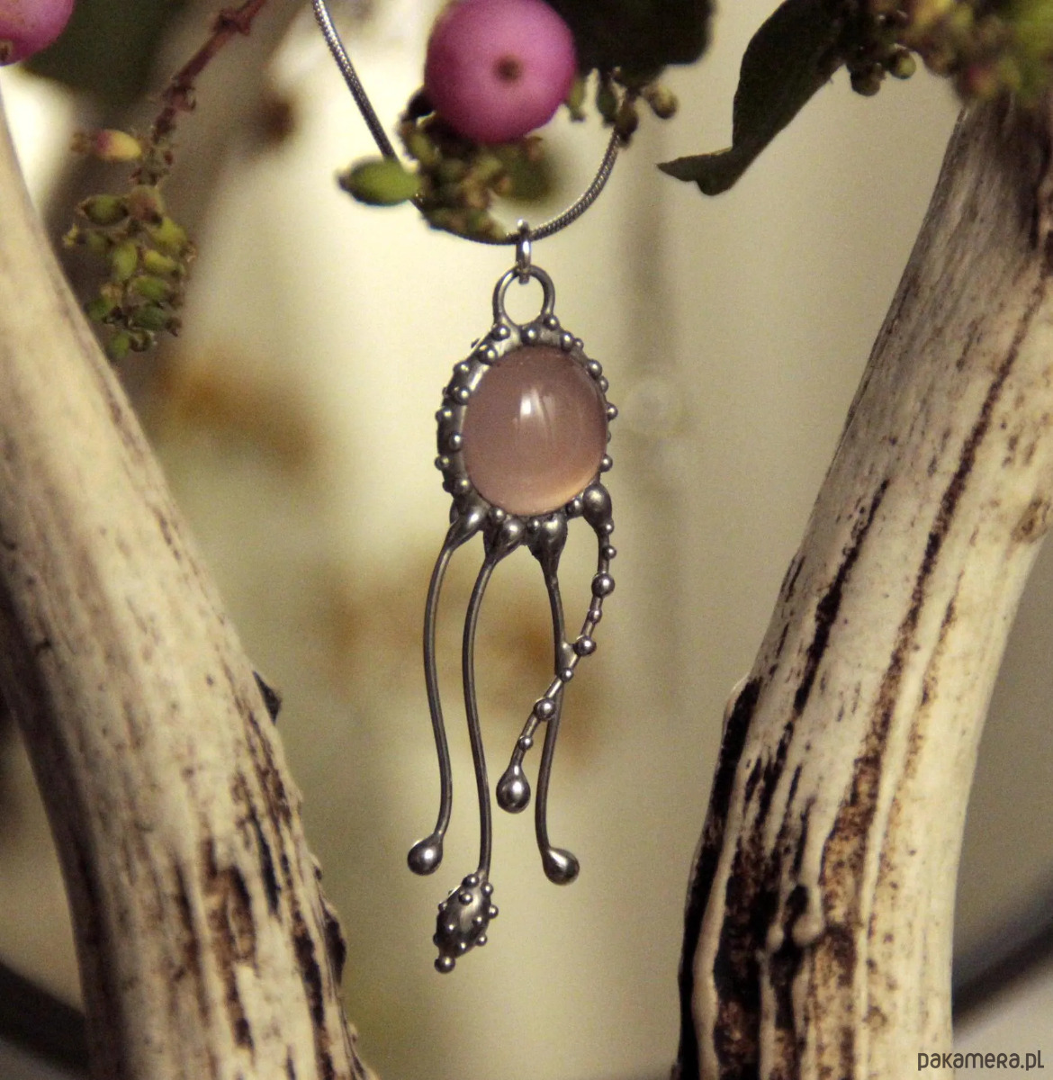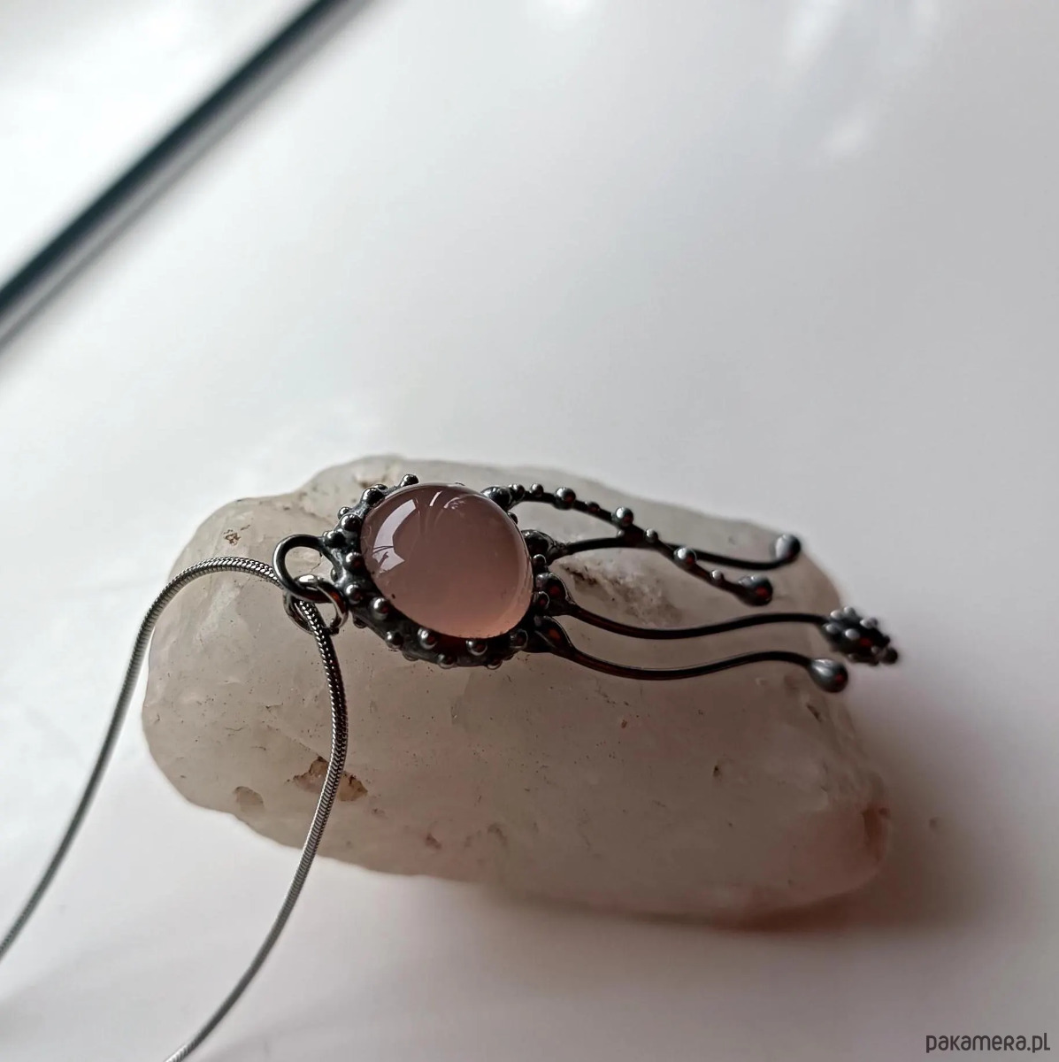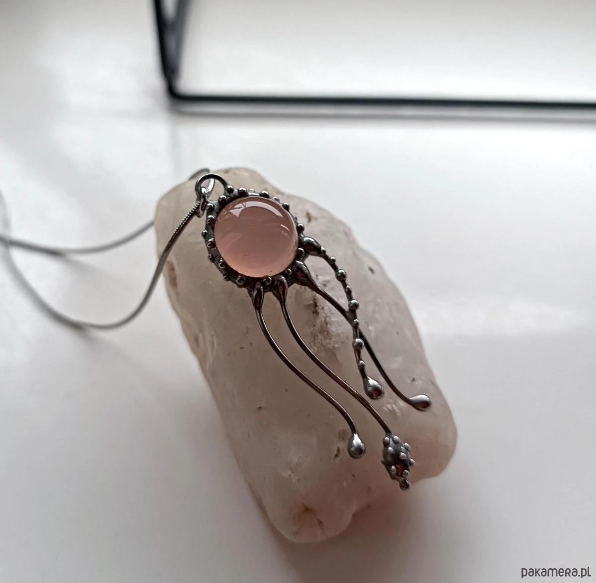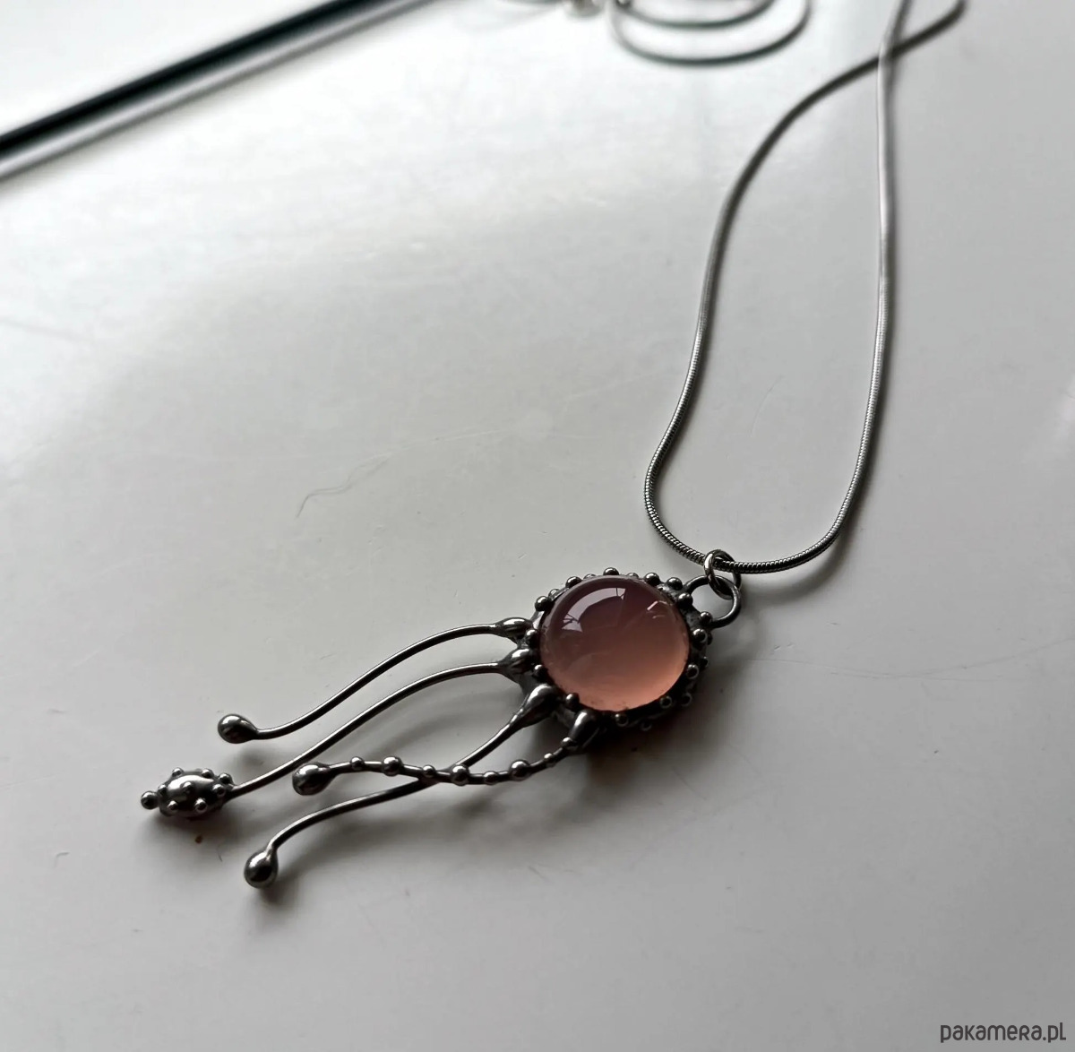 Naszyjnik z witrażem przedstawiającym meduzę z kamieniem z agatu różowego
