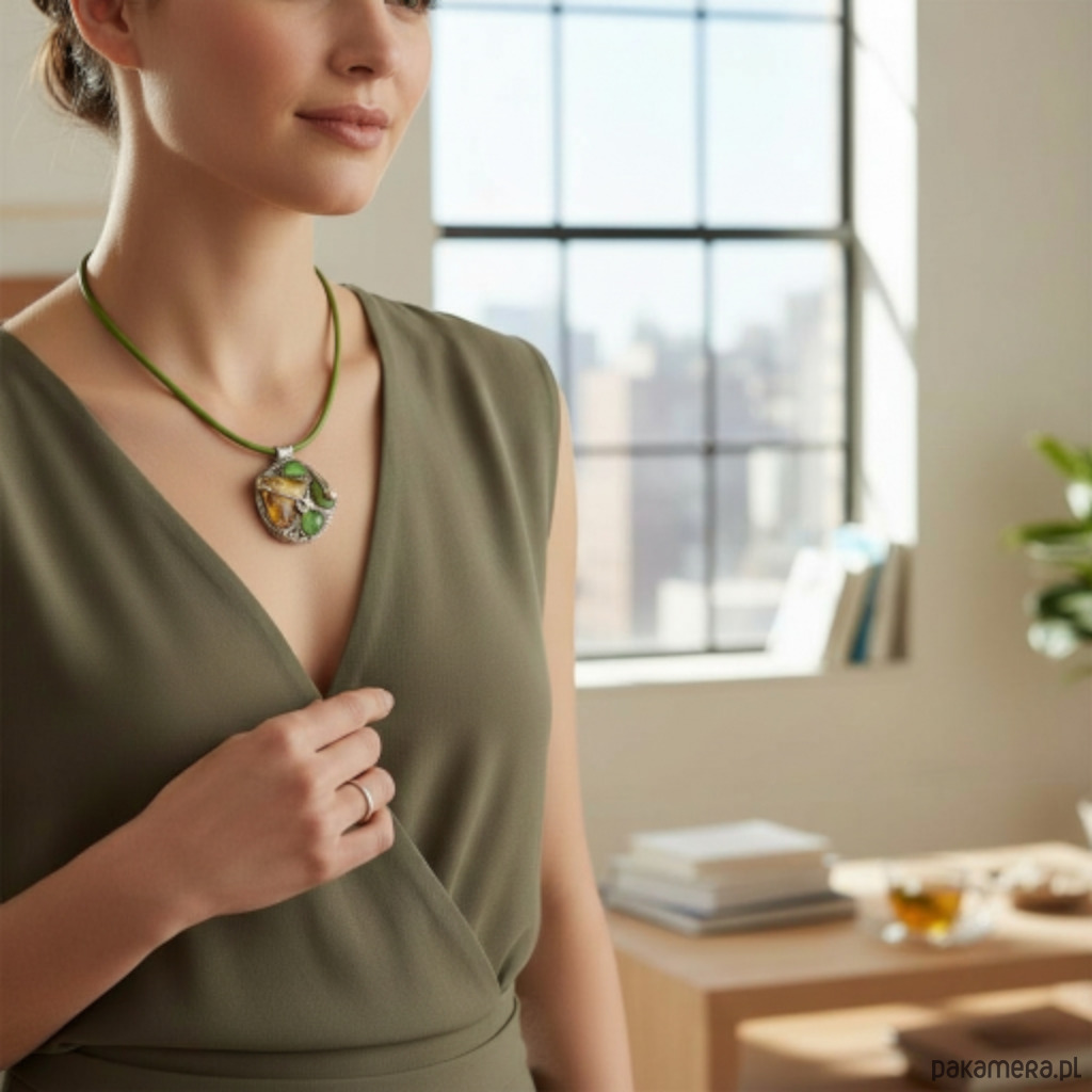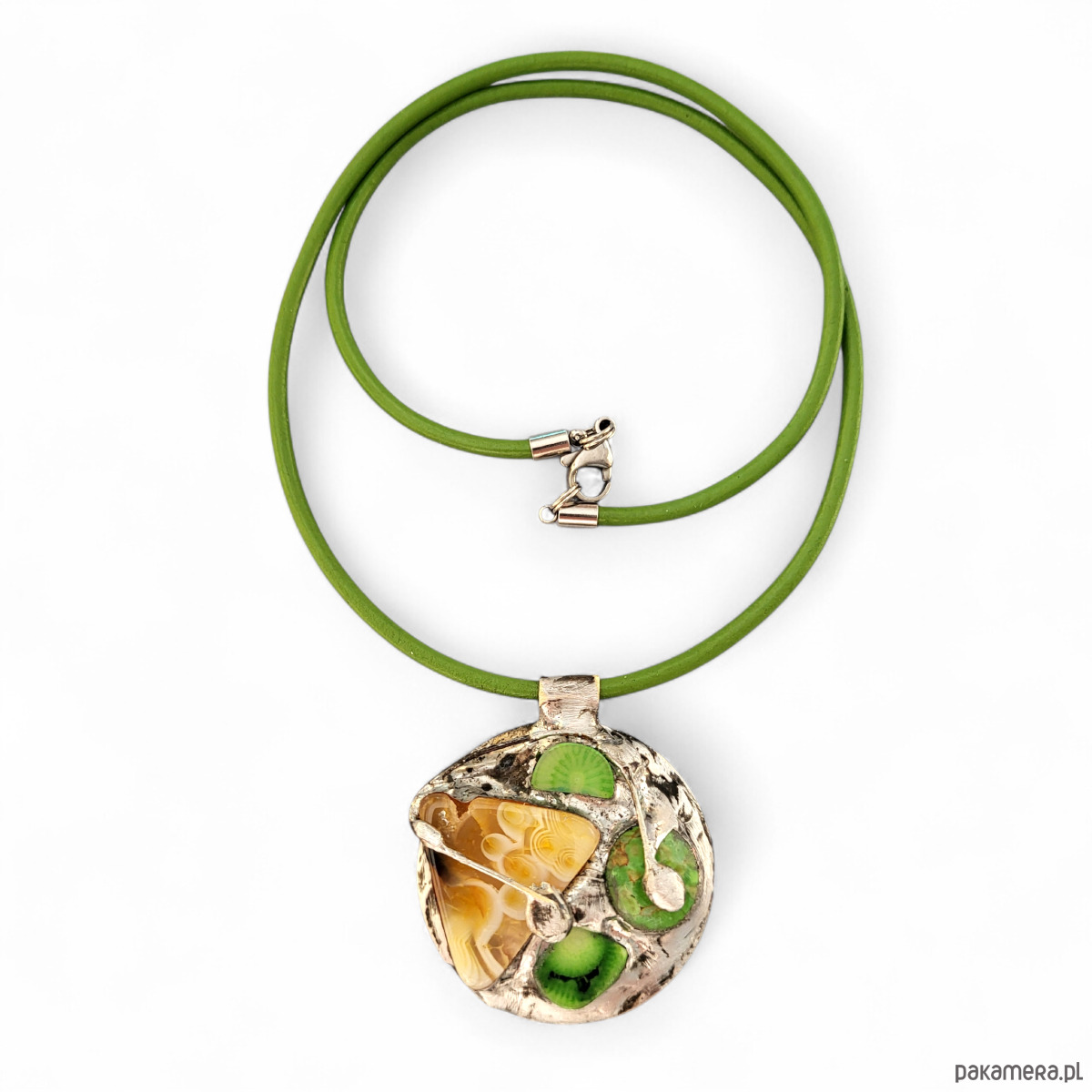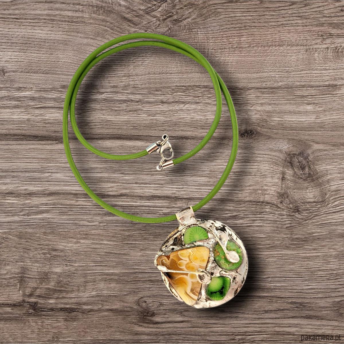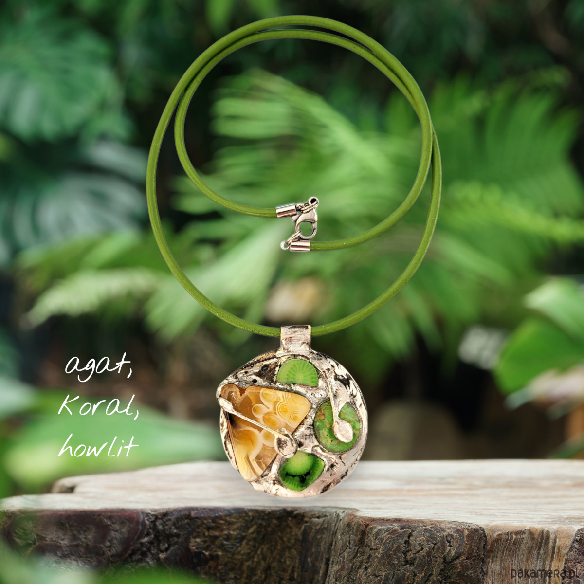 Naszyjnik z witrażowym wisiorem BOTANIQO z agatem, koralem, howlitem