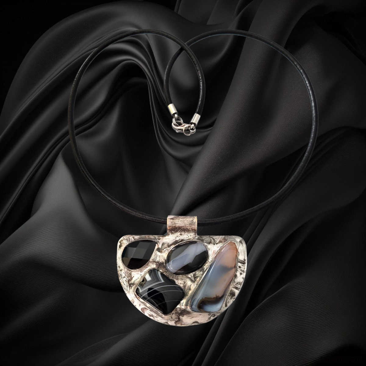 Naszyjnik z witrażowym wisiorem MONTENEGRO II agaty, onyks