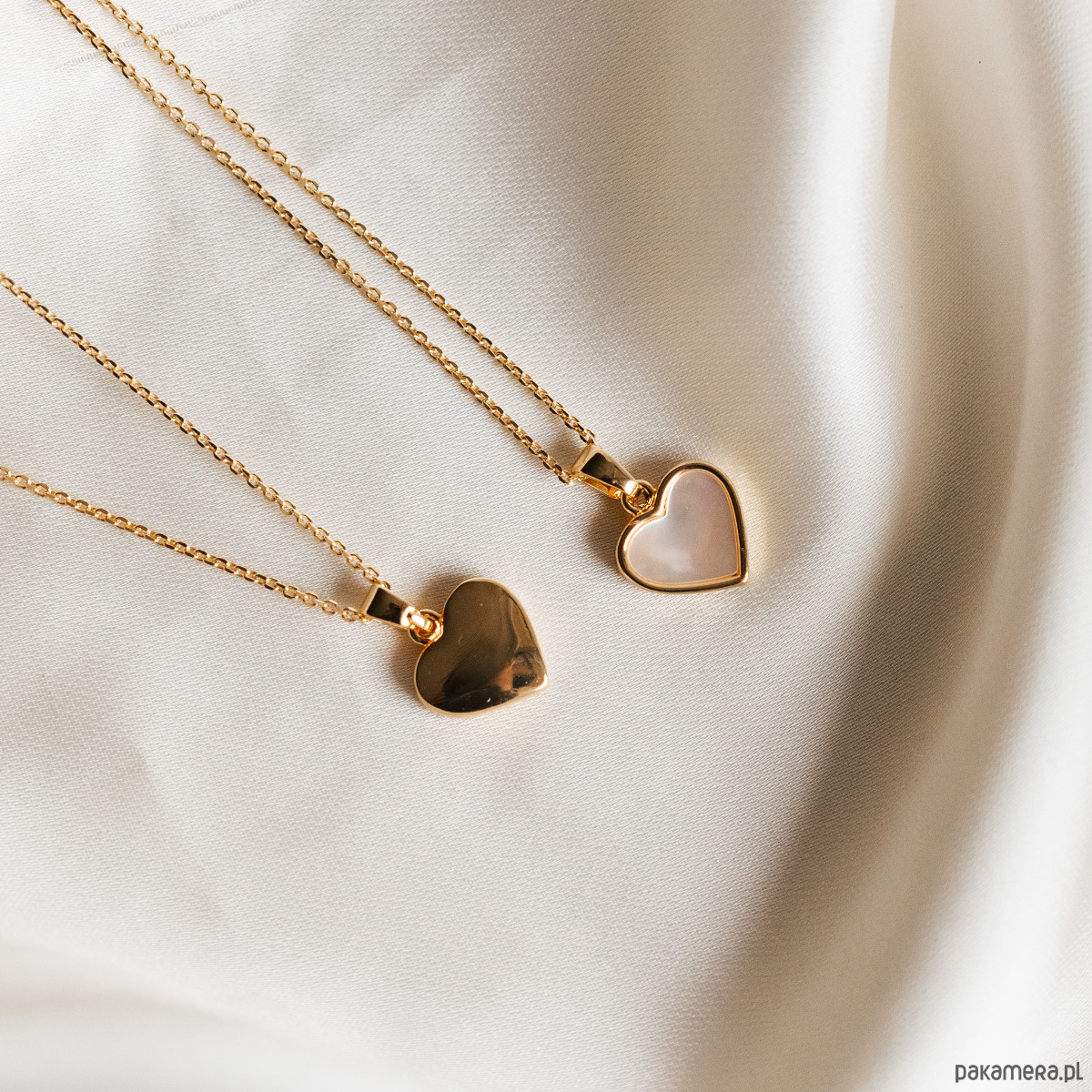 Srebrny. pozłacany łańcuszek Ag925 z zawieszką sercem z masy perłowej pozłacaną 14k złotem. Ponadczasowa klasyka, która na pewno długo się nie znudzi. Zawieszkę można swobodnie zdjąć. Naszyjnik zapakowany jest w ozdobne pudełko jubilerskie.