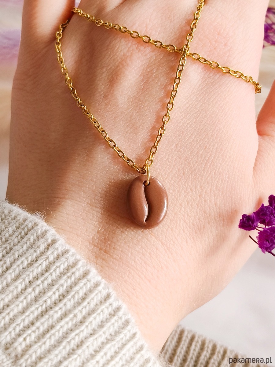 Naszyjnik z ziarnem kawy, akcesoria dla kawosza, mały prezent, boho