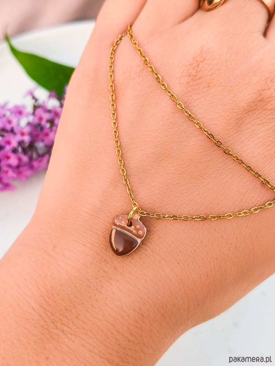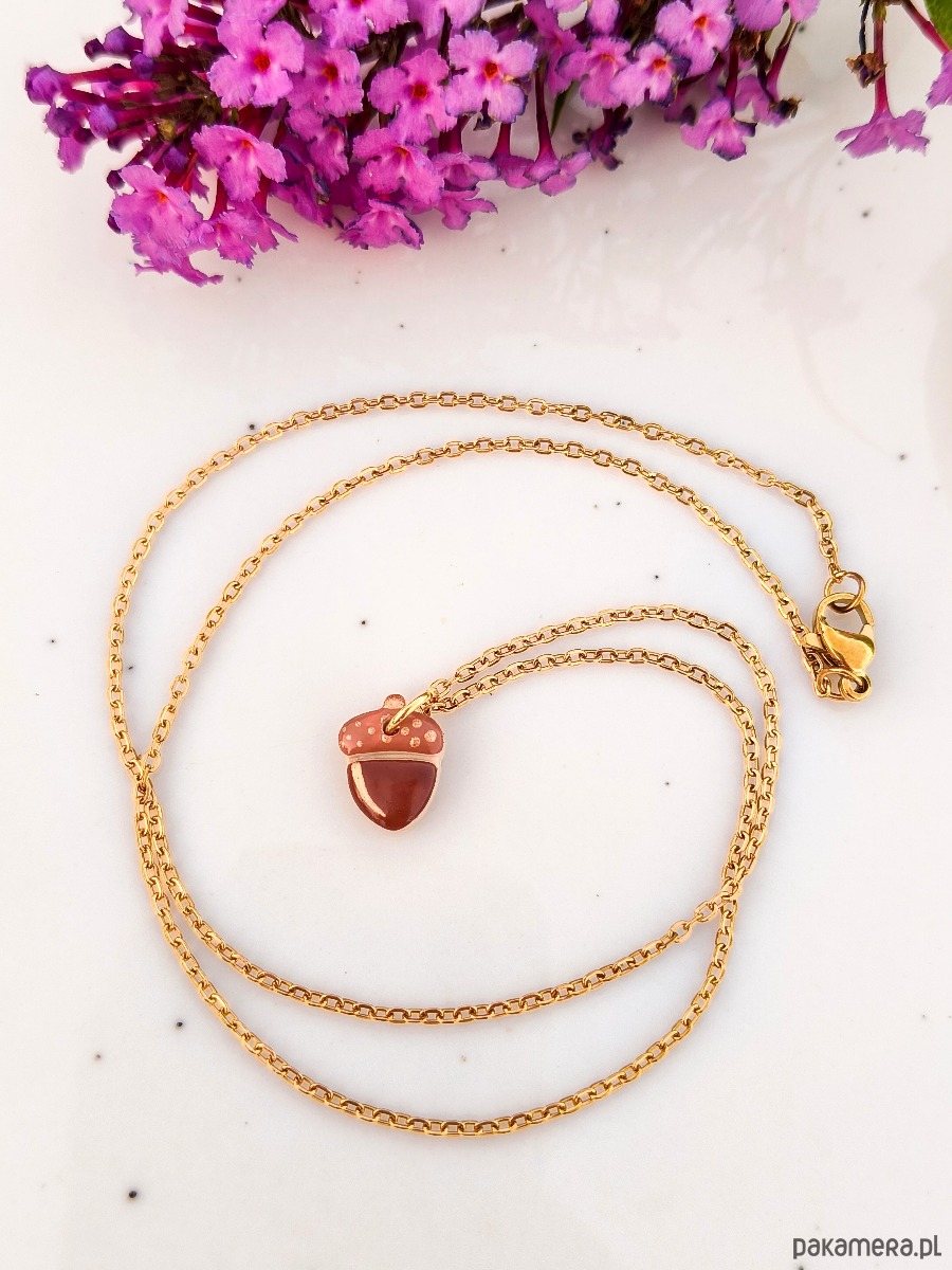 Naszyjnik z żołędziem wisiorek na jesień, amulet dla niej, mały prezent