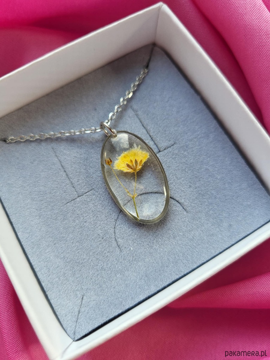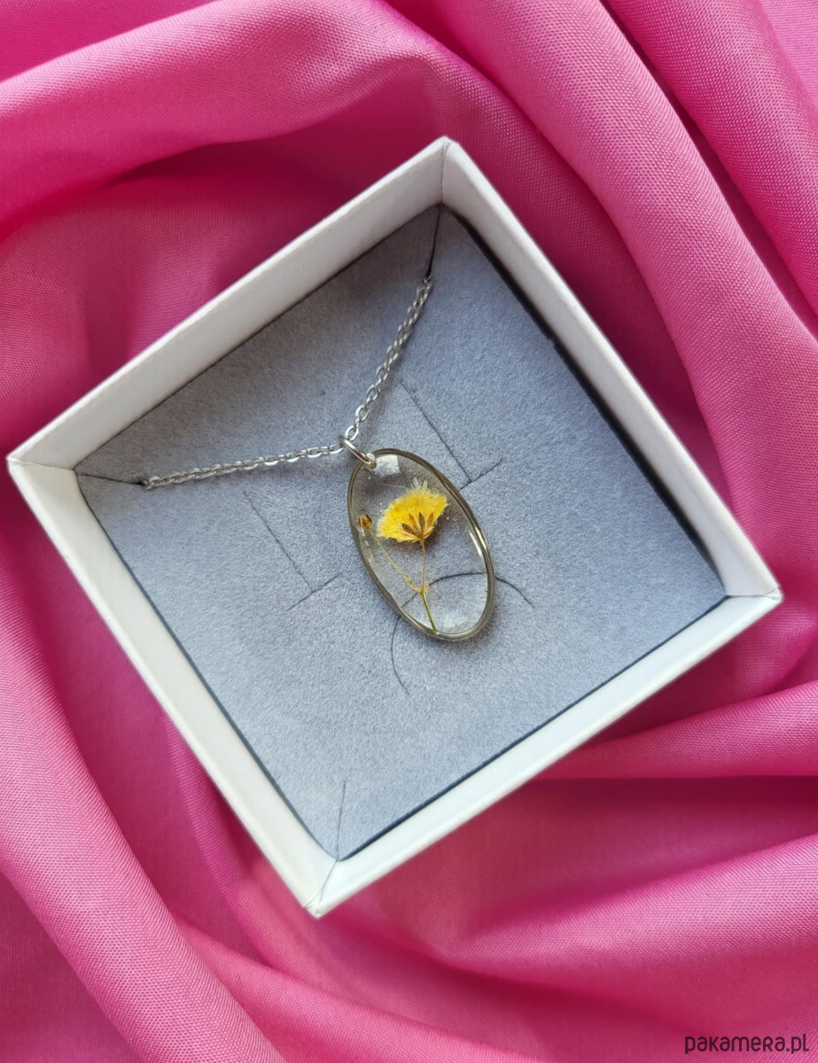 Naszyjnik z kwiatem suszonej gipsówki to unikatowa, ręcznie wykonana biżuteria z serii Harmonia.