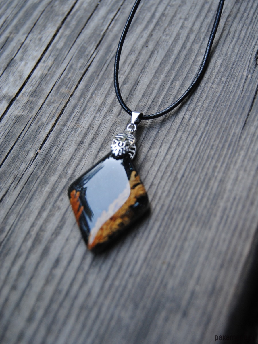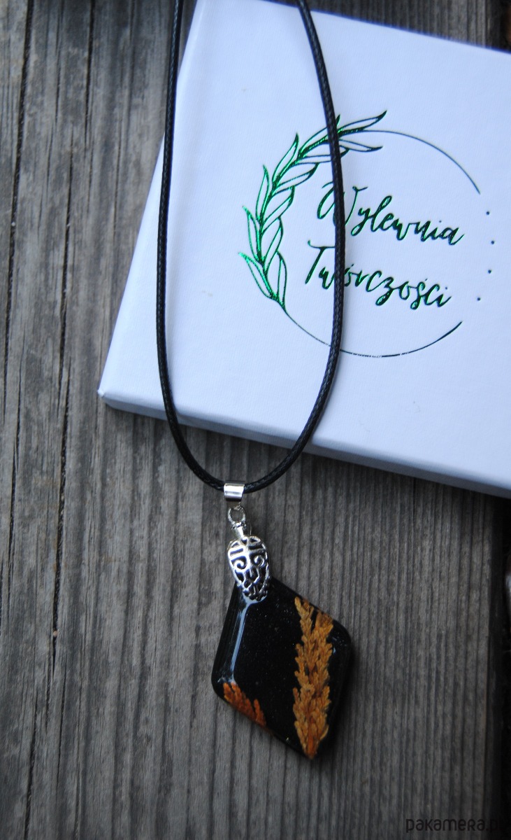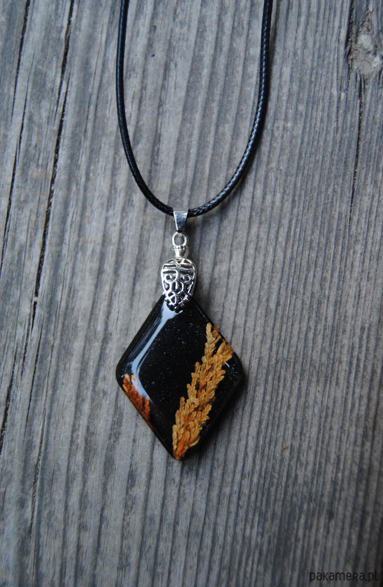 Naszyjnik z żywicy nocne niebo z polną rośliną