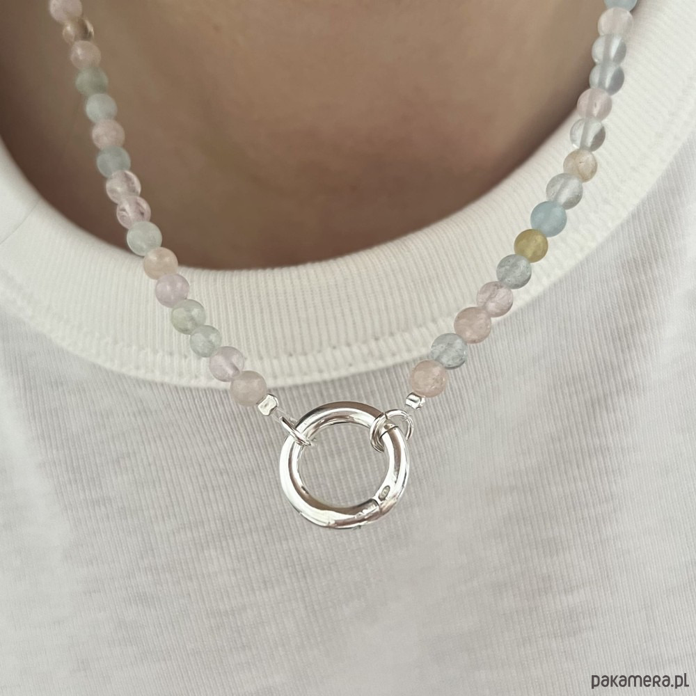 Naszyjnik ZAPIĘCIE KOŁO morganit KOLOR kamienie naturalne pastelowe