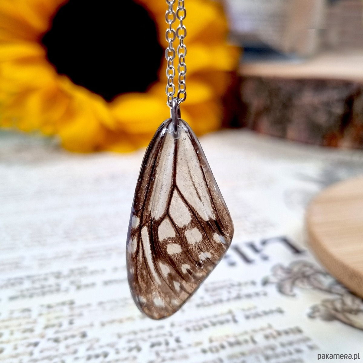 Naszyjnik z prawdziwym skrzydłem motyla zatopionym w żywicy. 🦋
