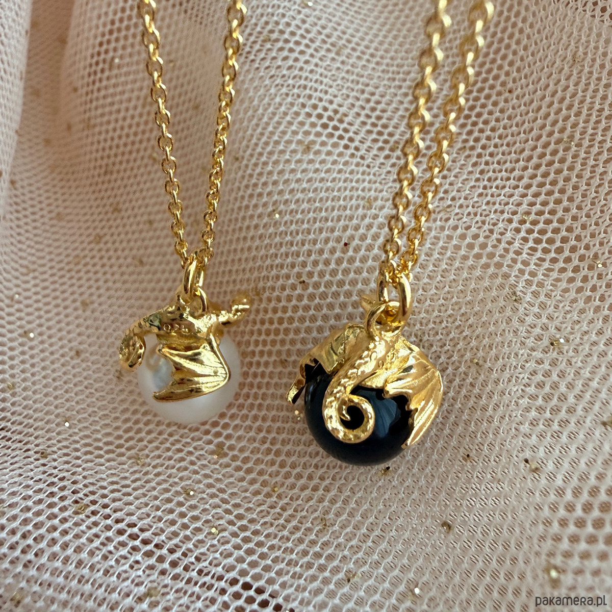 Naszyjnik ze smokiem i perłą, złoty smok na wakacje