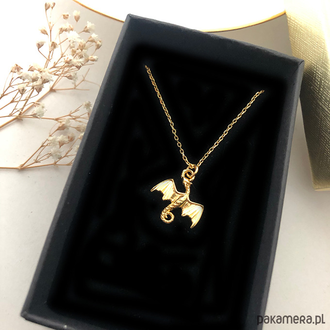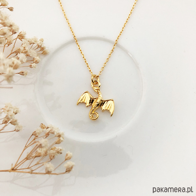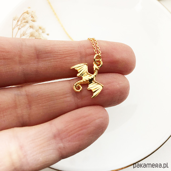 Delikatny naszyjnik z zawieszką w kształcie smoka. Delikatny błyszczący mały smok może byc wyjątkowym prezentem dla wielbicielki filmów.