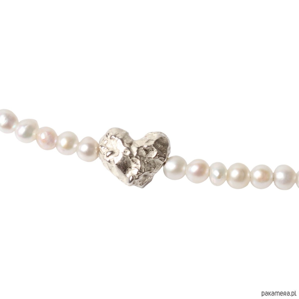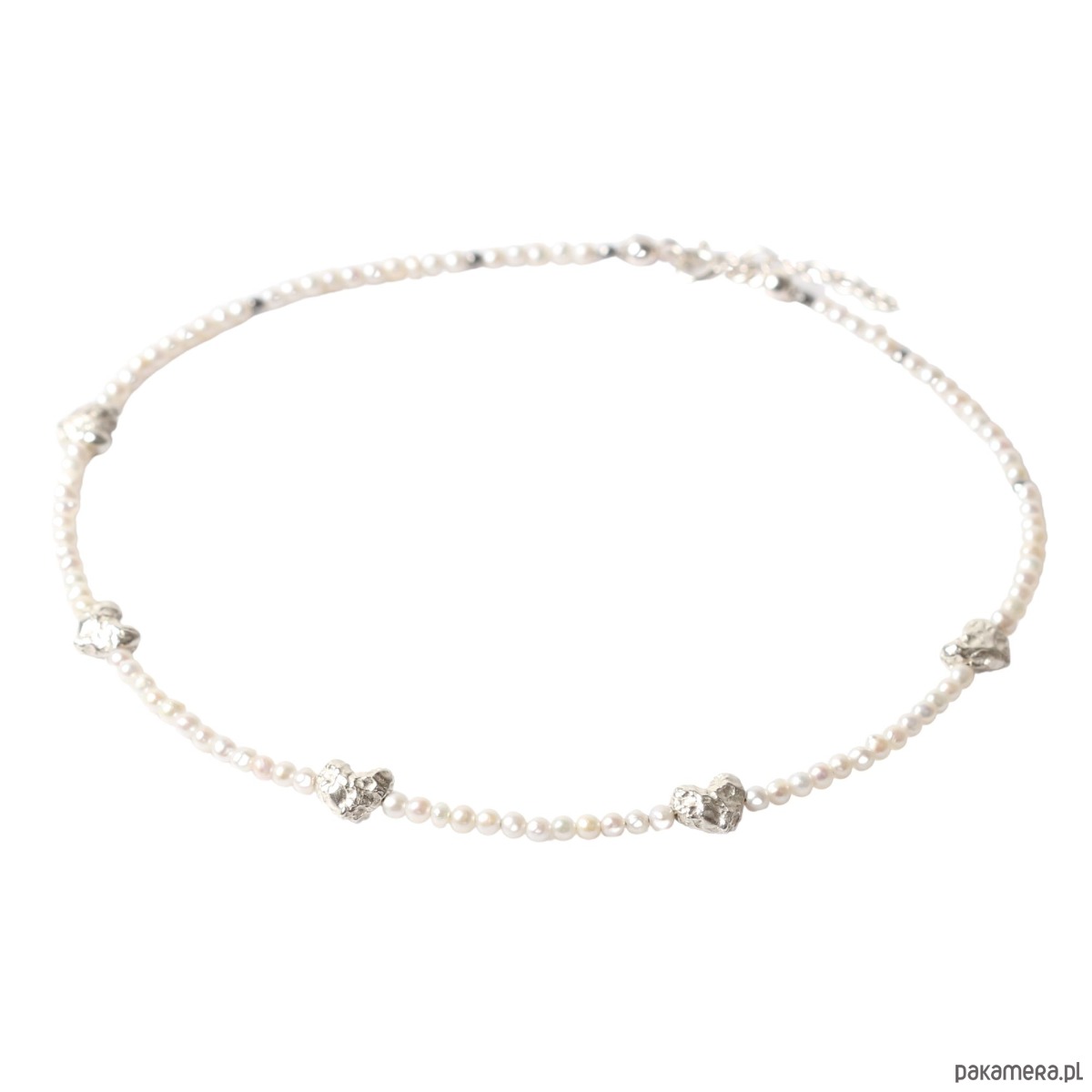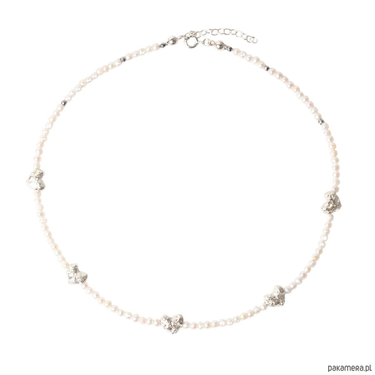 Naszyjnik ze srebrnymi serduszkami i perłami Organica