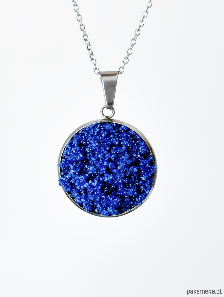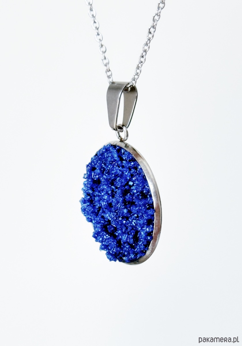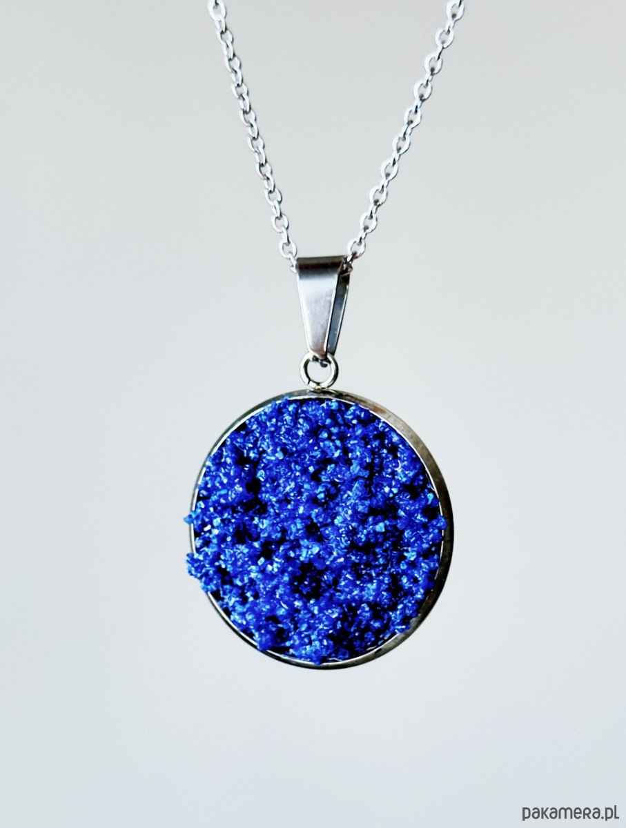 Naszyjnik ze stali nierdzewnej, niebieski wisiorek, wisiorek z cukru