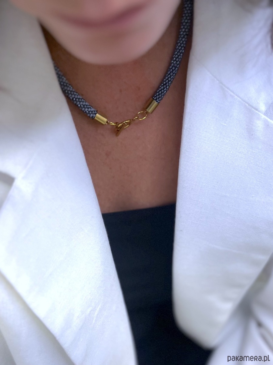 Odkryj magię detalu z naszyjnikiem Be So stworzonym w całości ręcznie na szydełku z ok 1600 drobnych, mieniących się szklanych koralików. Każdy koralik został starannie nawleczony i ułożony w harmonijną kompozycję, a cały proces tworzenia zajmuje kilka godzin precyzyjnej pracy, by efekt był perfekcyjny i pełen charakteru.