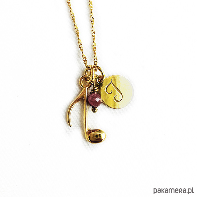 Delikatny naszyjnik z zawieszką złotą nutką. Może być personalizowany literką i kamieniem.