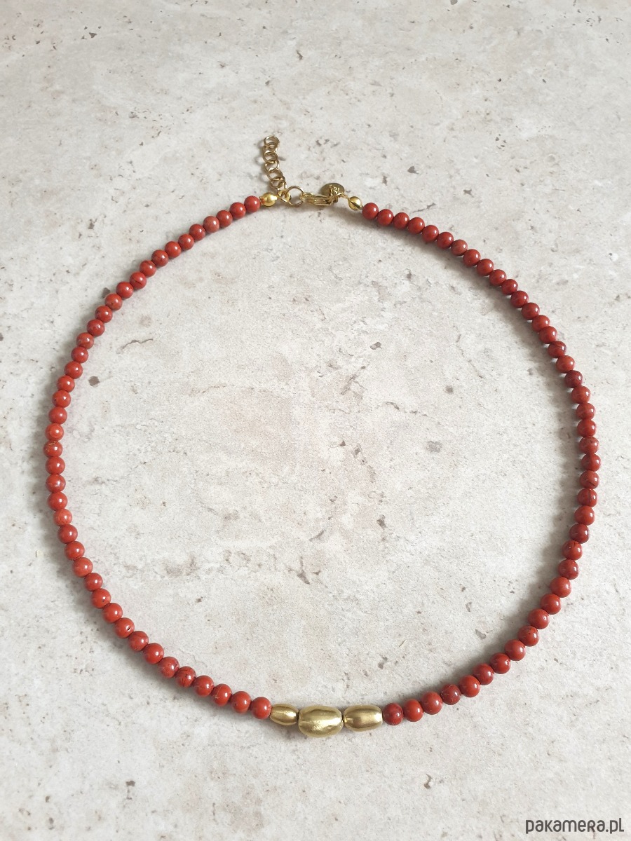 Naszyjnik ZEN jaspis czerwony , mosiądz