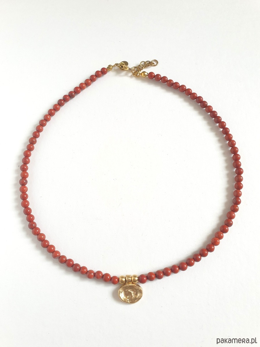 Naszyjnik ZEN jaspis czerwony, zawieszka mosiądz