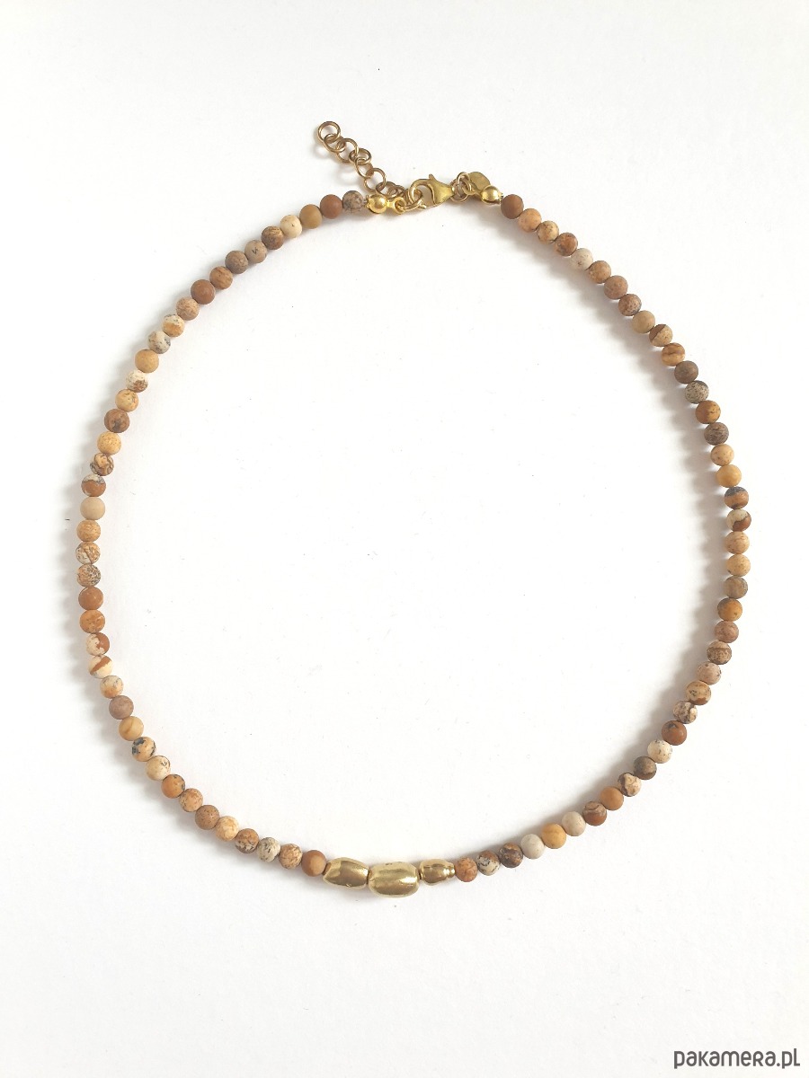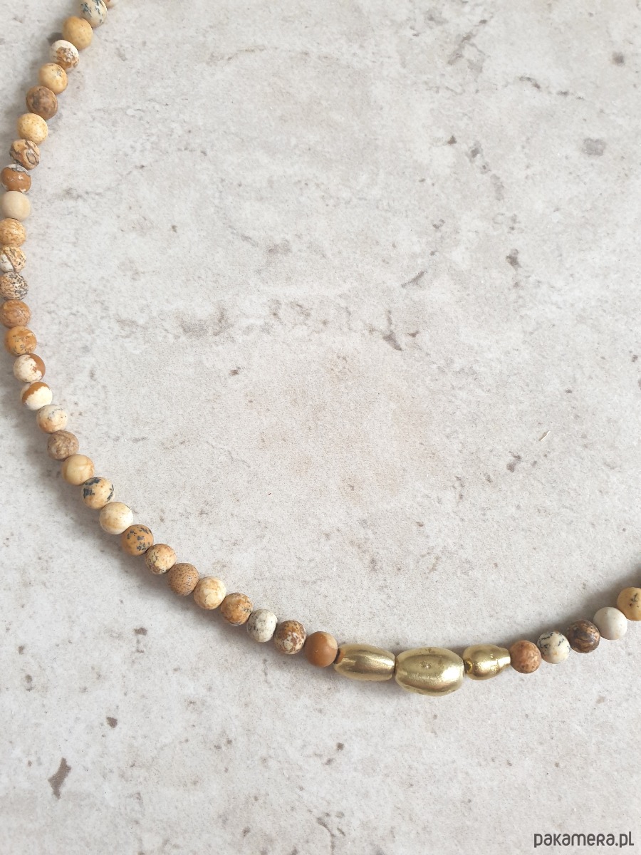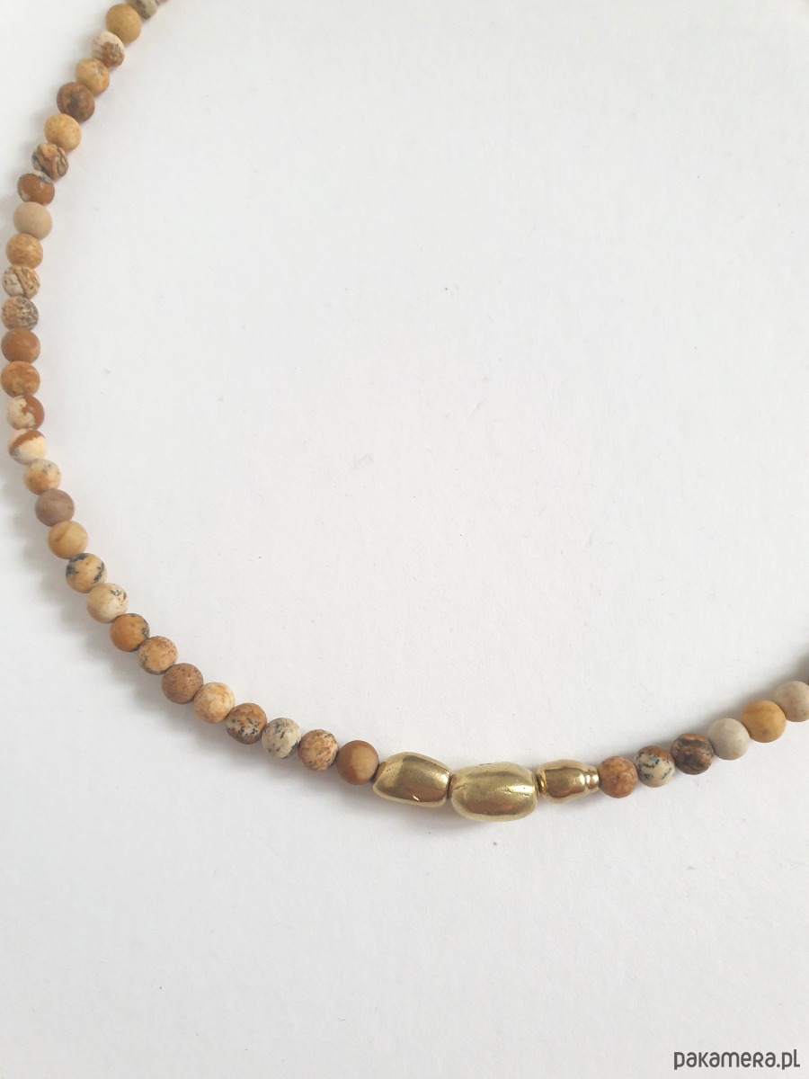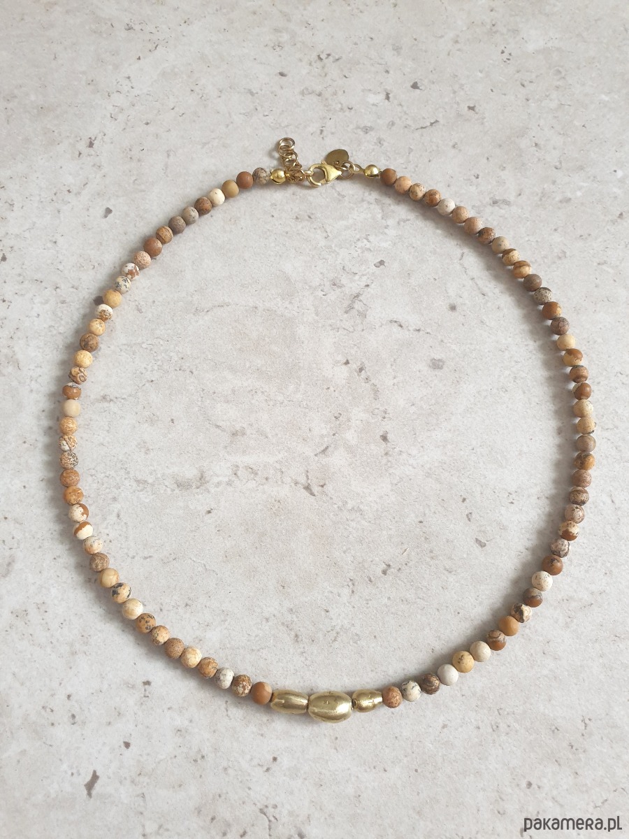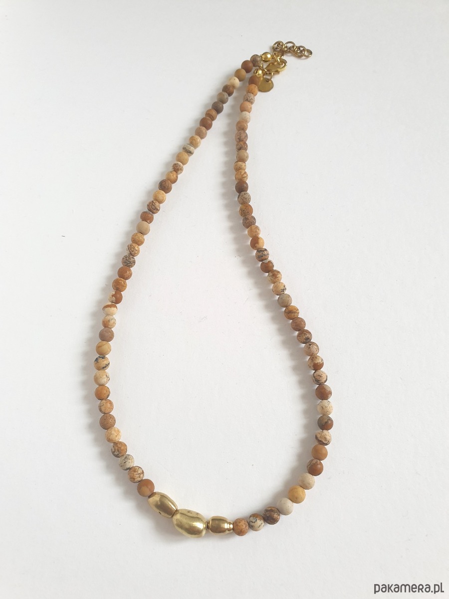 Naszyjnik ZEN jaspis obrazkowy , mosiądz