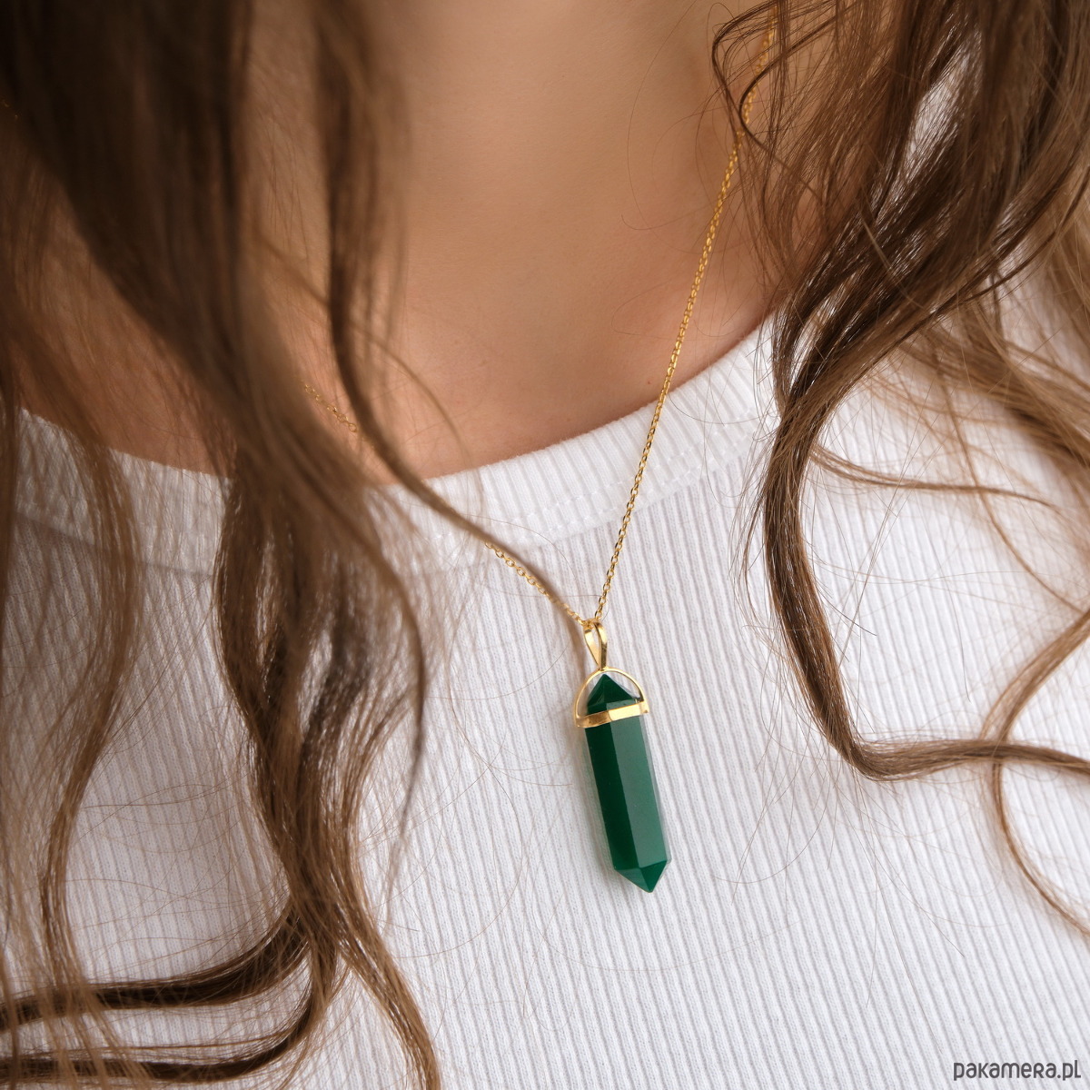 Naszyjnik z ozdobnym soplem zielonym onyksem: