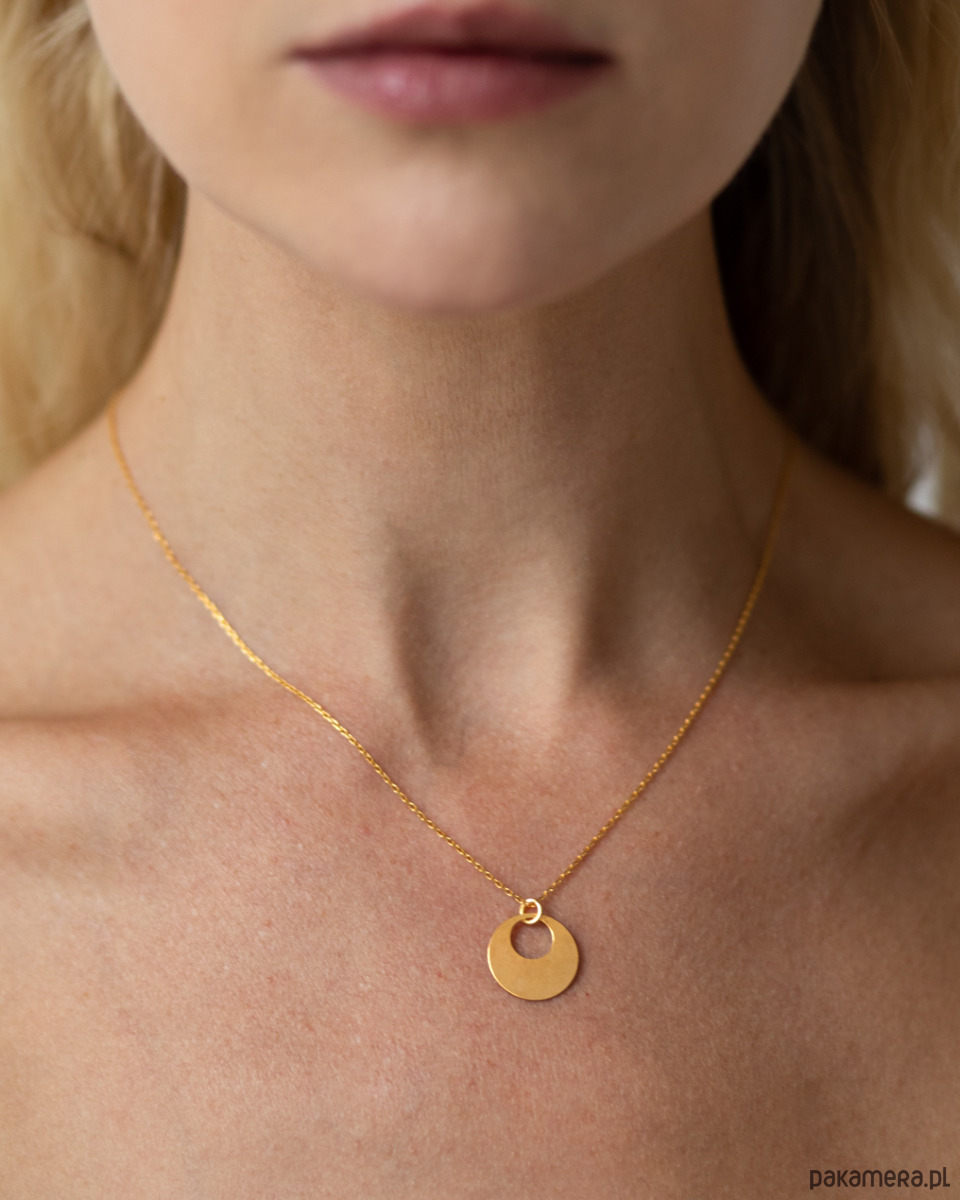 Niezwykle minimalistyczny naszyjnik ozdobiony małym kółeczkiem. Klasyczny wzór, który sprawdzi się doskonale do codziennych stylizacji, jak również na specjalne okazje. Przy zapięciu metka z logo marki.