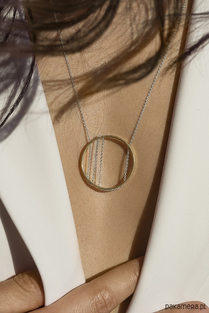 Niezwykle elegancki naszyjnik ozdobiony złoconym kołem.