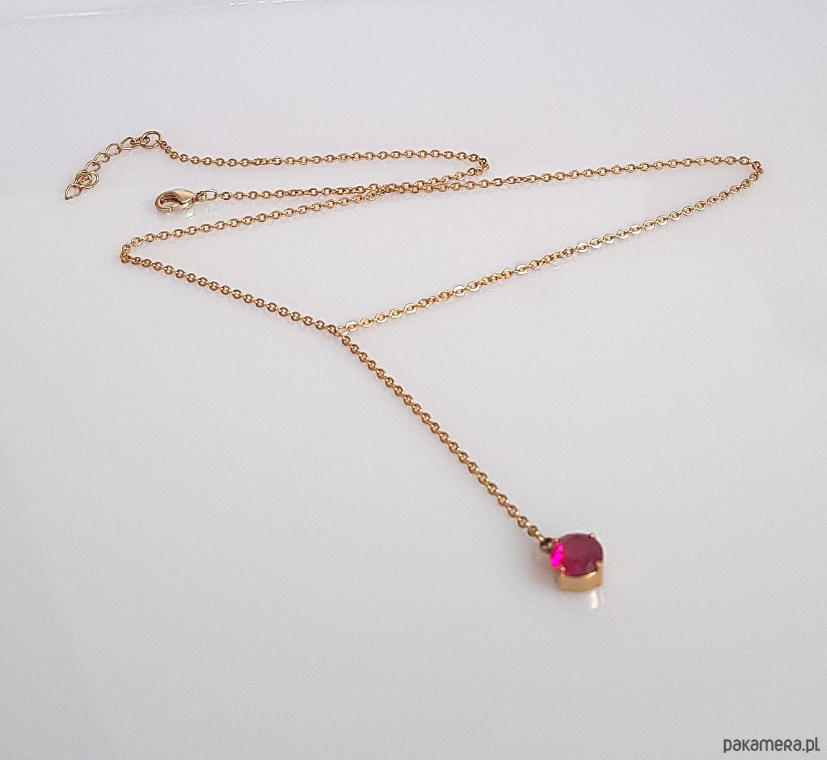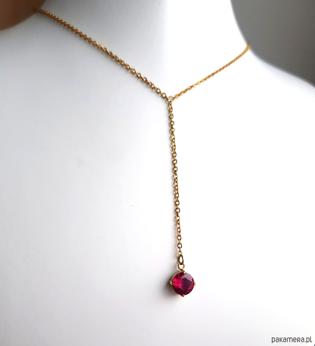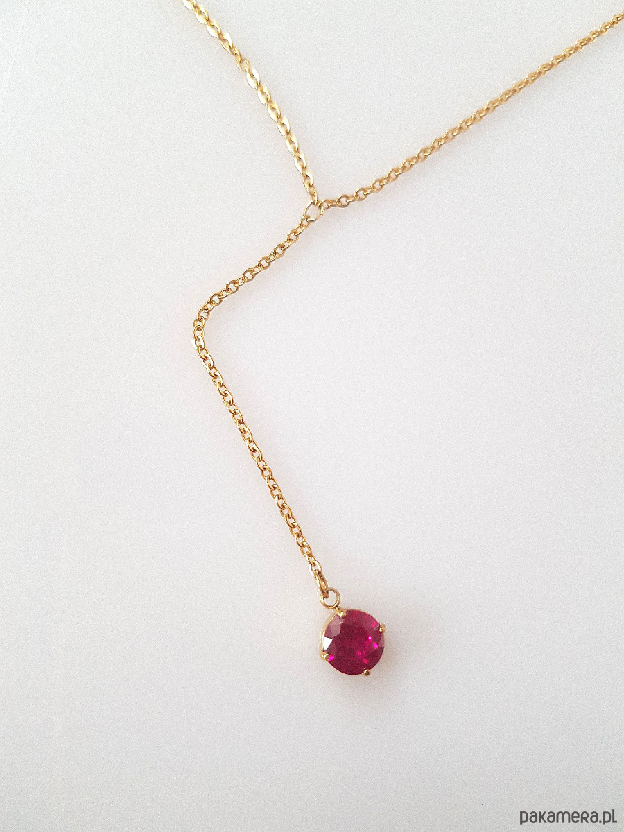 Minimalistyczny naszyjnik z amarantową kropeczką.