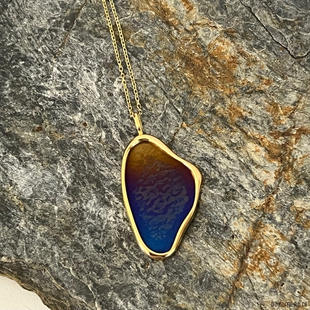 Naszyjnik - złoty, srebrny duży z kolorowego tytanu na łańcuszku