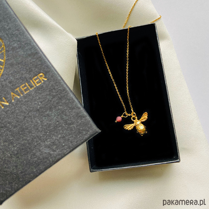 Słodki naszyjnik z wyjątkowym motywem trzmiela . Oryginalny i delikatny, oddany bardzo realistycznie. Wykonany ze srebra próby 925 i złocone 24 k złotem.