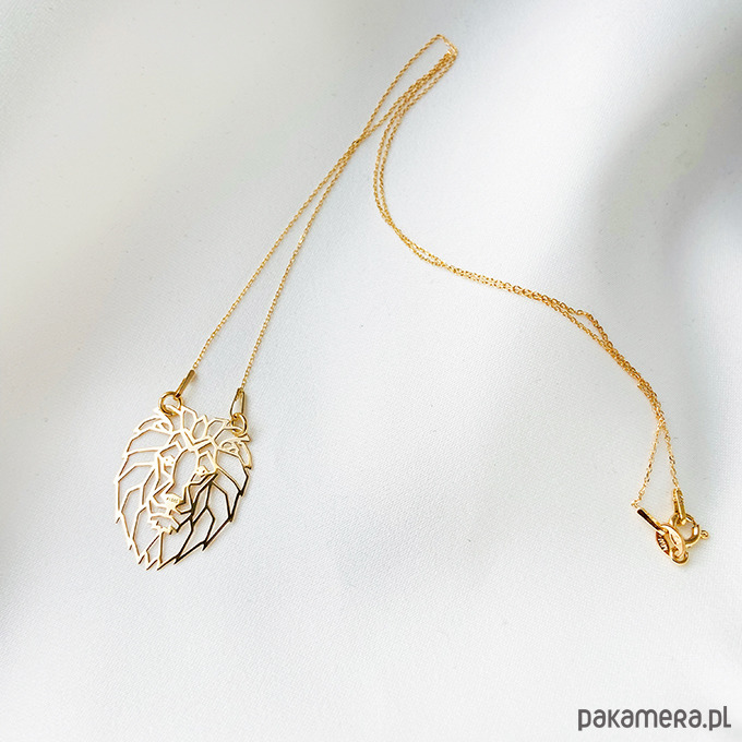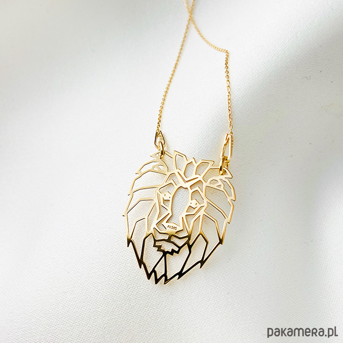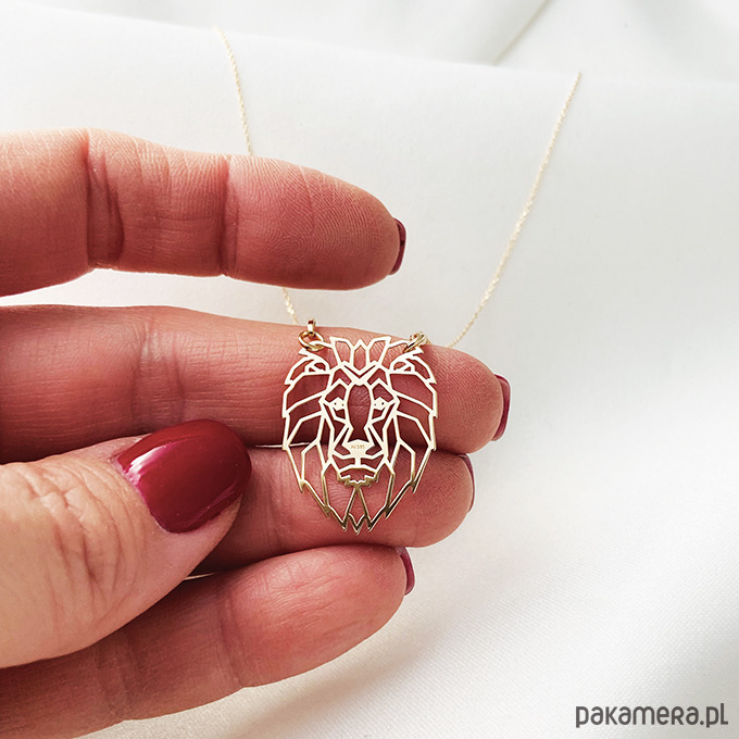 Piękny naszyjnik z zawieszką w kształcie głowy lwa to subtelna, a jednocześnie niezwykle wyrazista ozdoba, inspirowana sztuką origami. Delikatne linie i geometryczna forma nadają mu nowoczesnego charakteru, podkreślając siłę i elegancję symbolu lwa. To biżuteria o unikalnym designie, wykonana na podstawie autorskiego projektu, co czyni ją wyjątkową i niepowtarzalną.