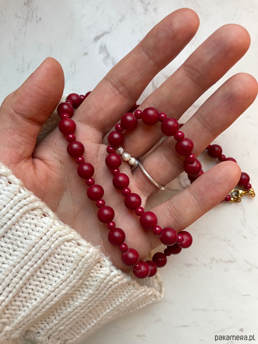 Naszyjnik JEMIOŁA - delikatny akcent świąteczny ze szklanych koralików.
