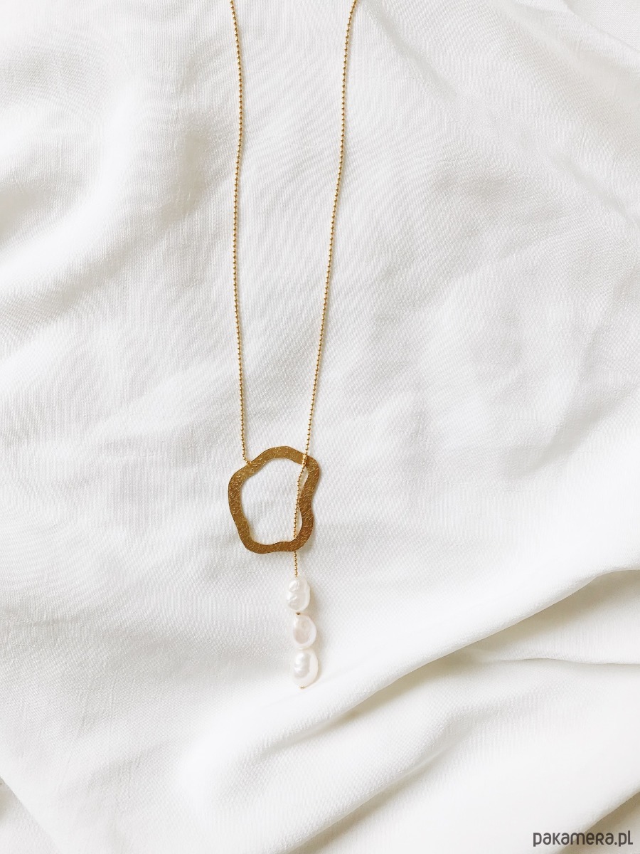 Naszyjnik z kolekcji La Perle wykonany z pozłacanego srebra próby 0,925 ozdobiony perłami, który został zaprojektowany z myślą by móc go nosić również na plecach.