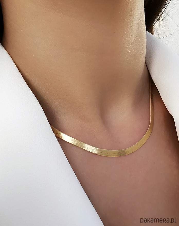 Naszyjnik tasiemka pozłacany wykonana z rodowanego srebrna próby 0,925 pozłacany 24-karatowym złotem.