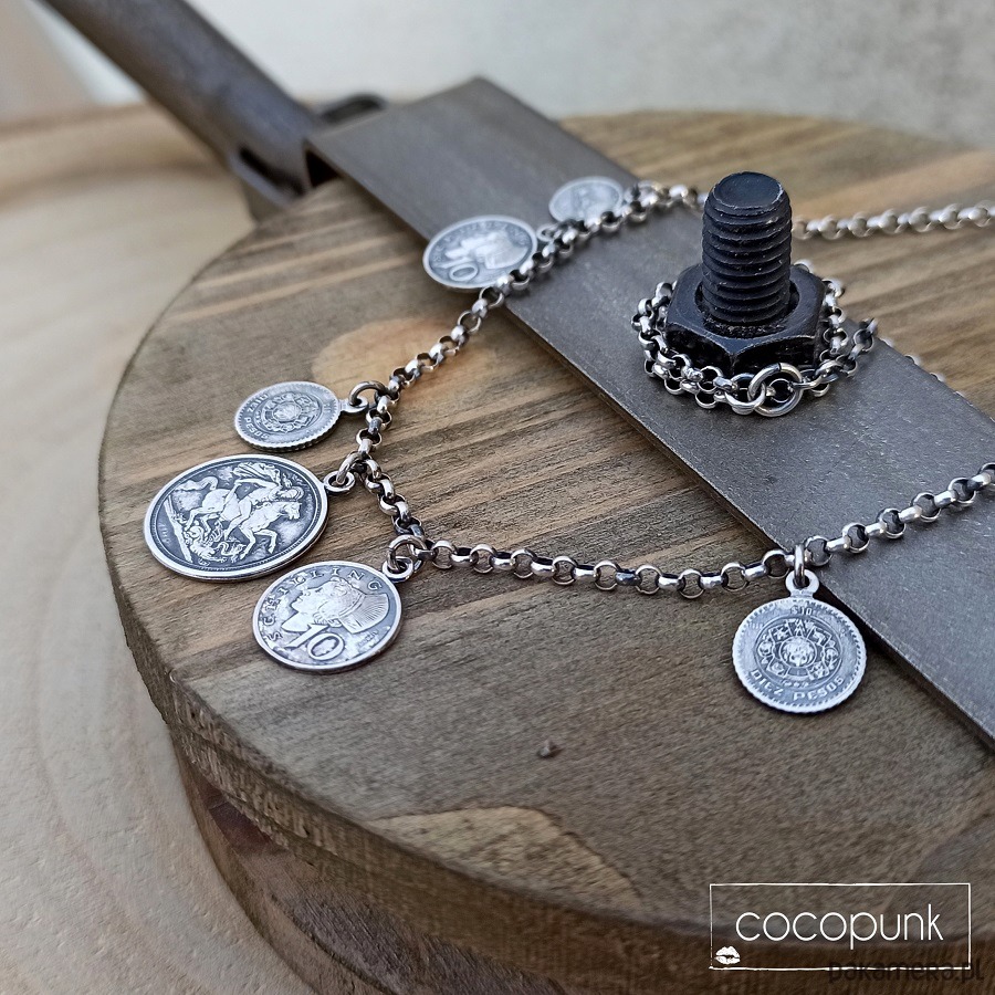 Naszyjnik z monetami Boho/ Gypsy. srebro 925