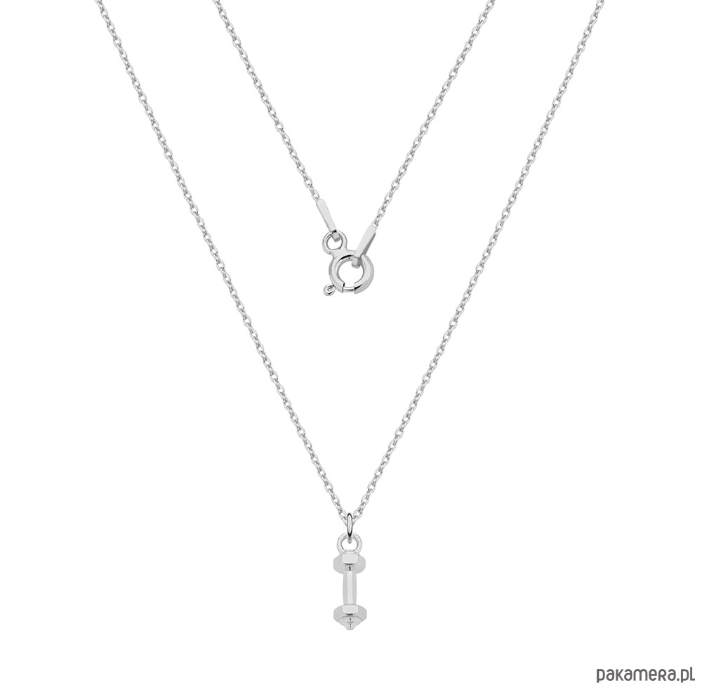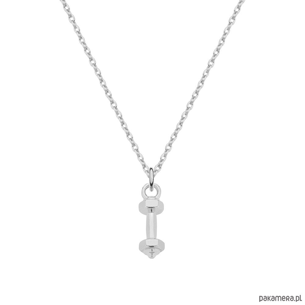 Naszyjnik został wykonany z łańcuszka oraz zawieszki w kształcie hantla.