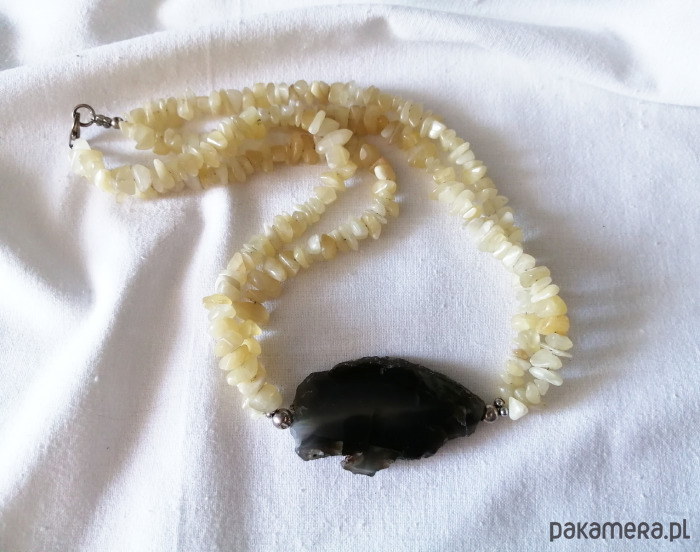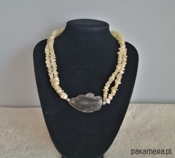 Podwójny naszyjnik wykonany z jasnożółtego jadeitu oraz brązowego agatu.
