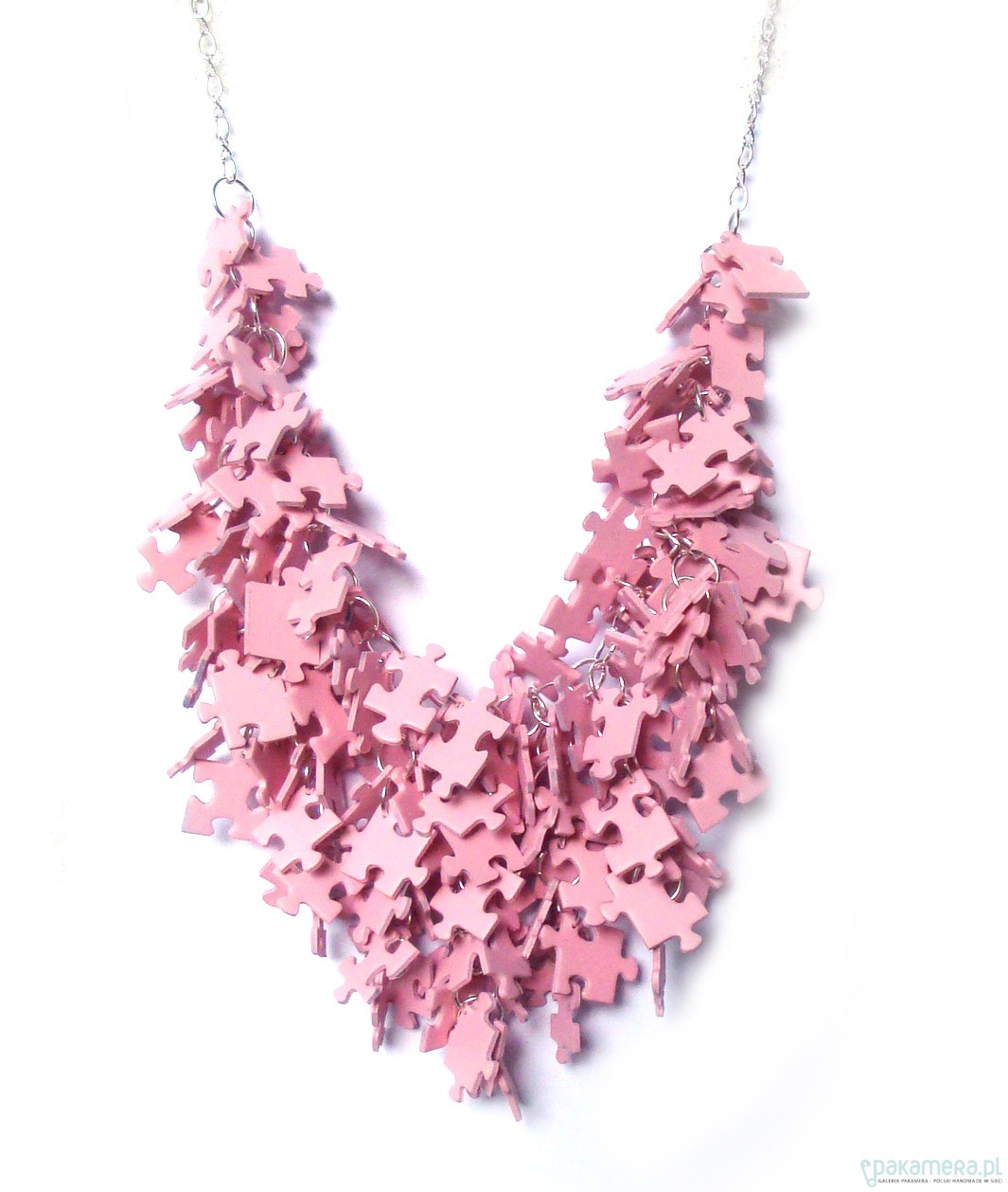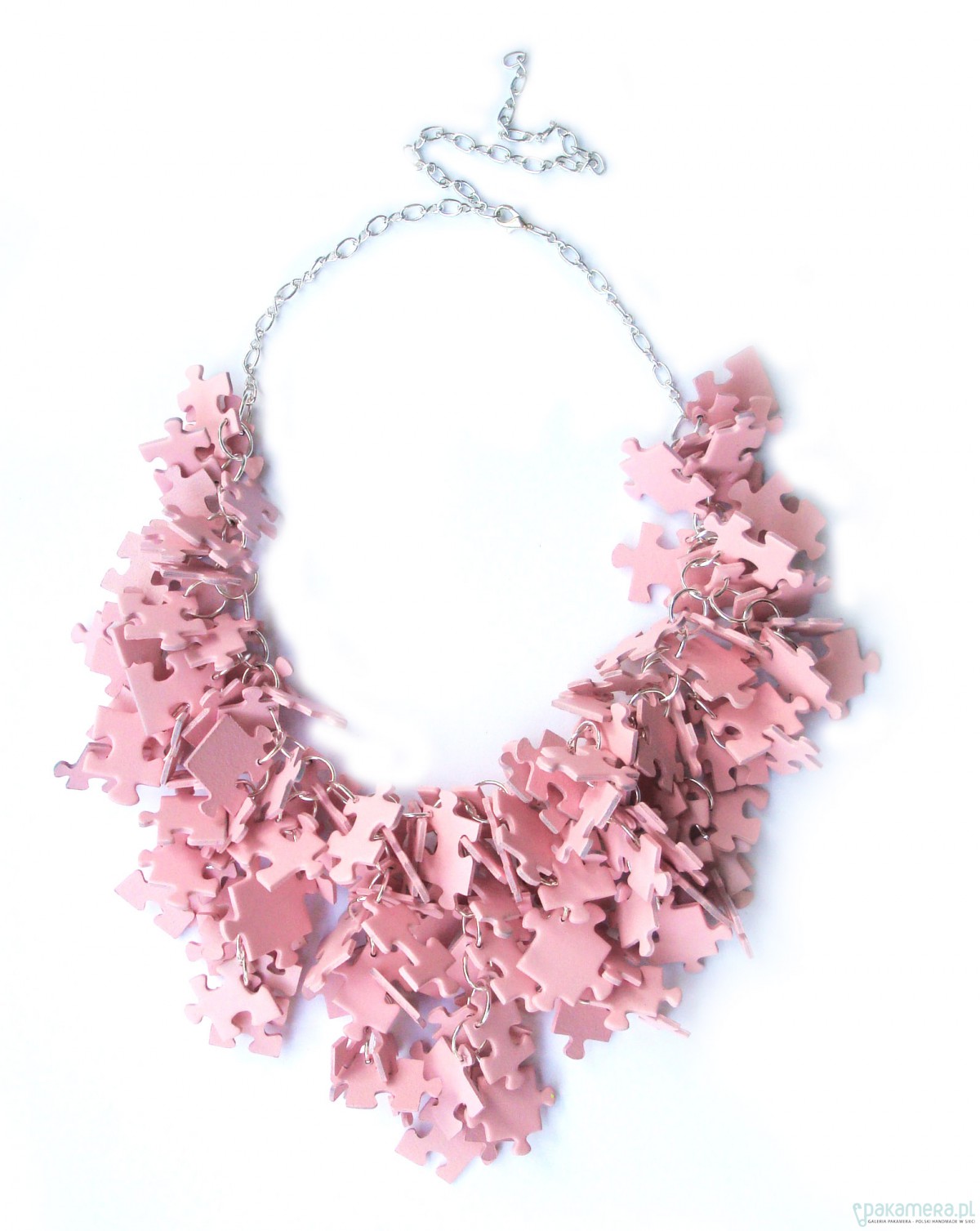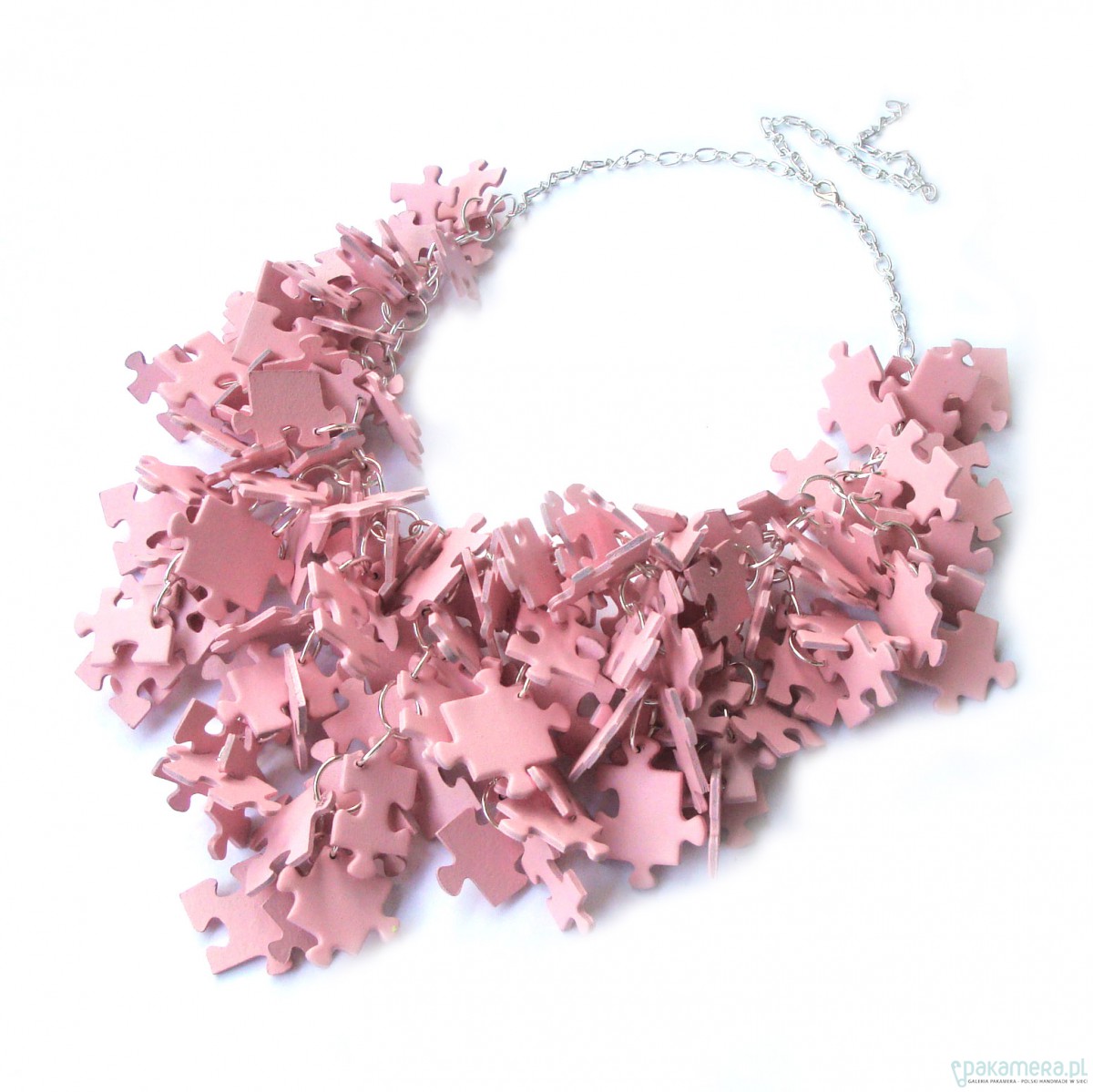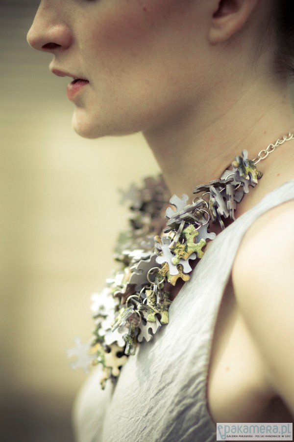 Oryginalna kolia wykonana ręcznie z puzzli. Elementy metalowe: w kolorze srebrnym. Długość regulowana. Max 66cm. Unikaj kontaktu z wodą! PuzzLove naszyjniki zostały docenione przez magazyn ELLE, Glamour i wiele portali modowych.